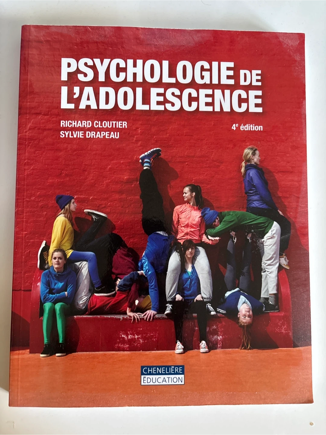 Selling a copy of Psychologie de l'Adolescence by Richard Cloutier and Sylvie Drapeau. It's the 4th edition and published by Chenelière Éducation