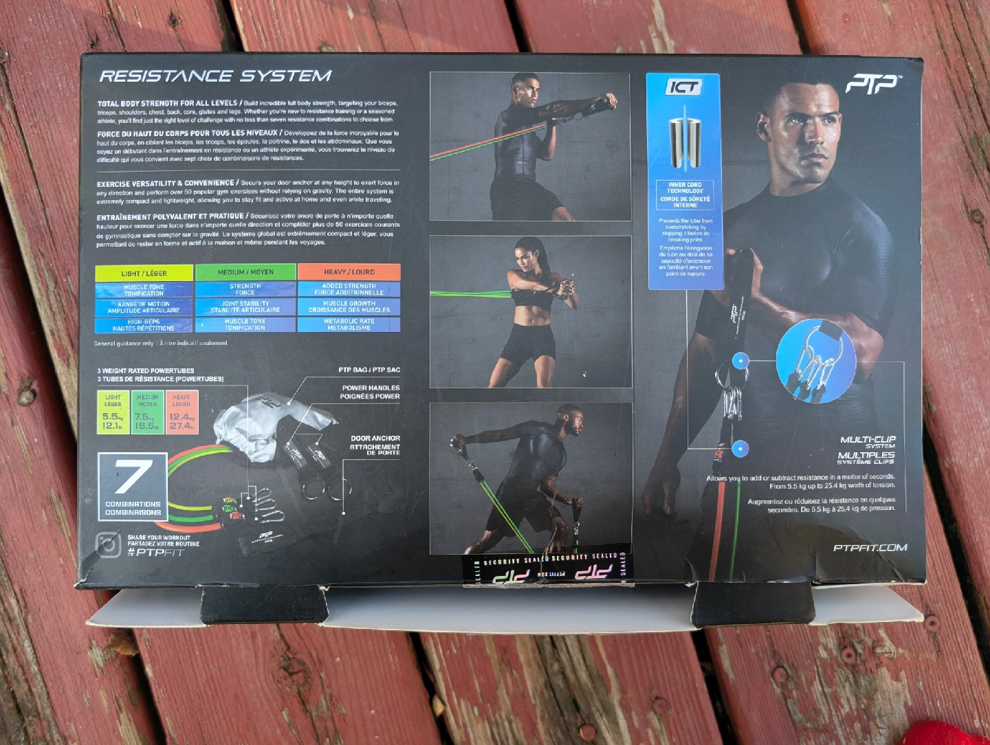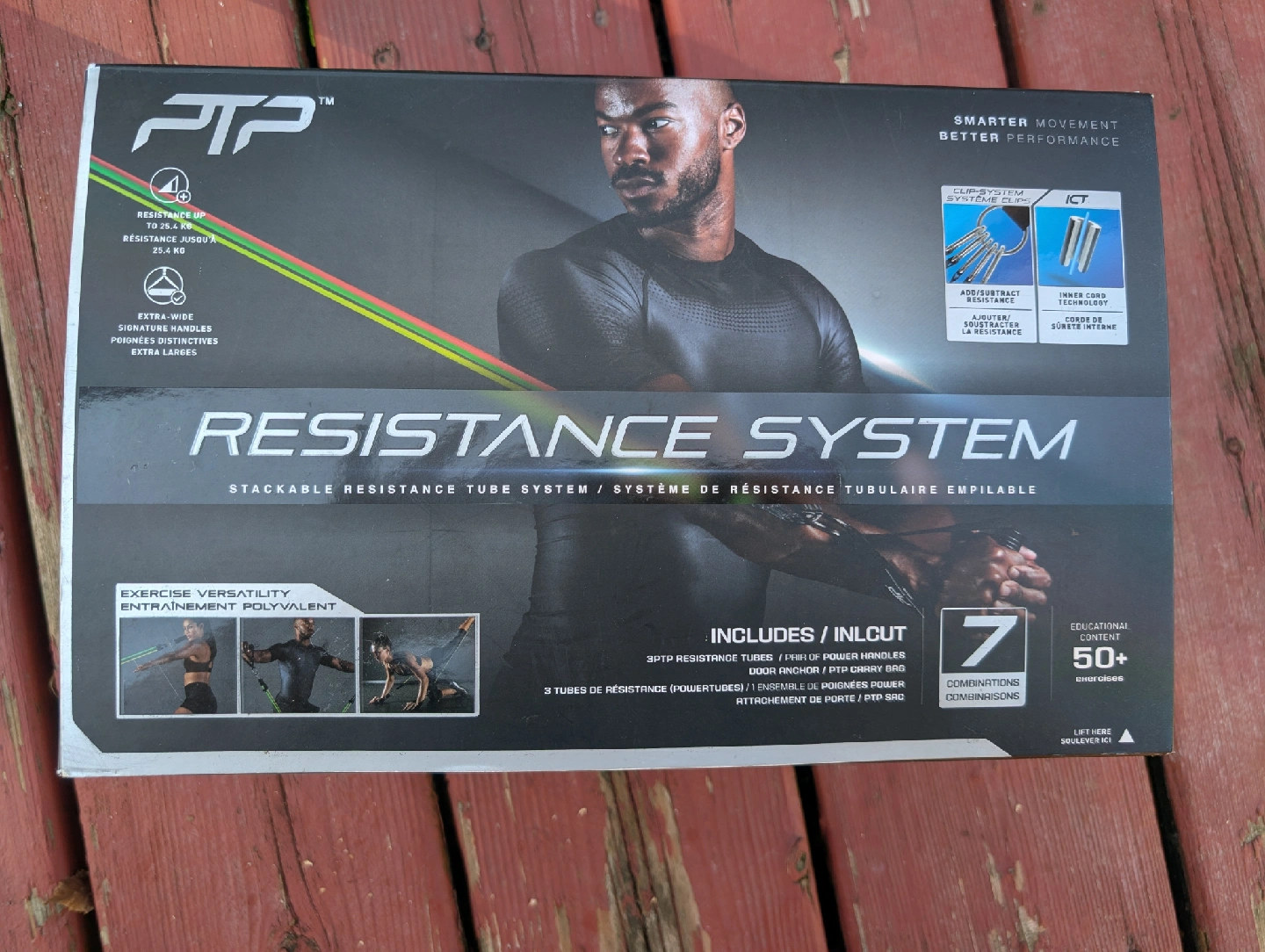 Brand new in box PTP Resistance System. Total body strength for all levels. Stackable resistance tube system, resistance up to 25.4 kg, extra wide handles, multi clip system, inner cord technology, 7 combinations for 50+ exercises. Box is opened but package inside is still sealed.
