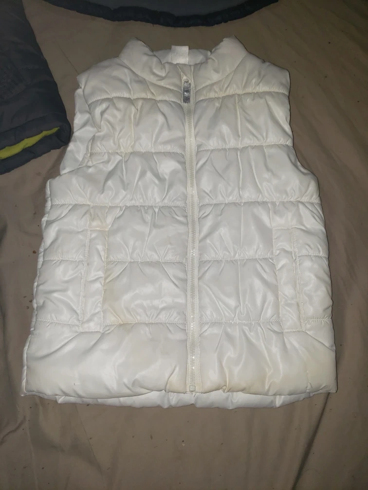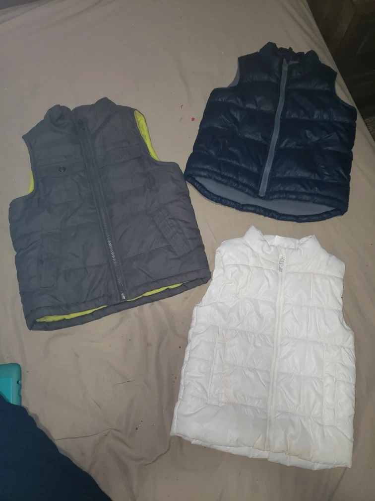 Selling a set of puffer vests in white, grey, and navy. They're in good condition and ready for a new home!