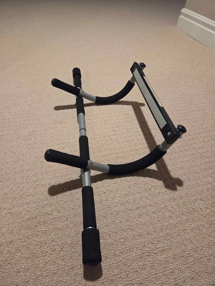 Get your fitness journey started with this used doorway pull-up bar, perfect for upper body workouts in the comfort of your home. It's designed to easily fit most standard door frames, providing a stable and secure platform for various exercises. Key Features: * Easy Installation: Sets up in seconds without any drilling or tools. * Multiple Grip Positions: Offers a variety of grips for different muscle targeting. * Durable Construction: Made with high-quality steel for lasting use. This pull-up bar is in good condition, ready to help you achieve your fitness goals. I've priced mine competitively. If the ad is up, yes, it is still available!
