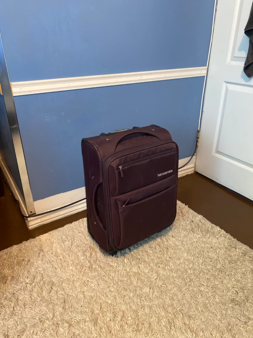 Selling a Sensamite carry-on luggage in a nice purple color. It's in good condition and ready for your next trip!
