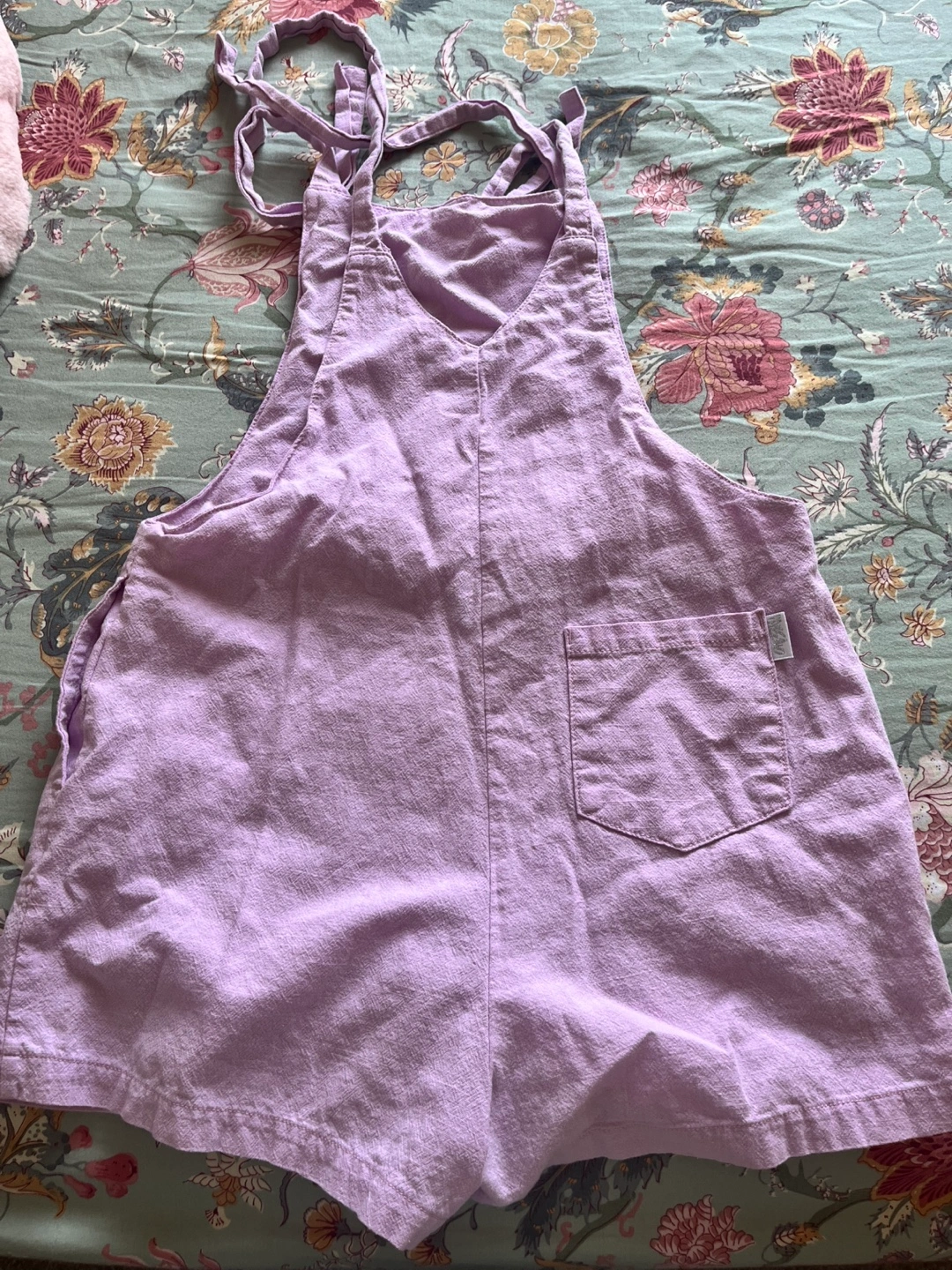 A cute purple romper with tie straps! It's in great condition and ready for a new home. Perfect for warm weather!