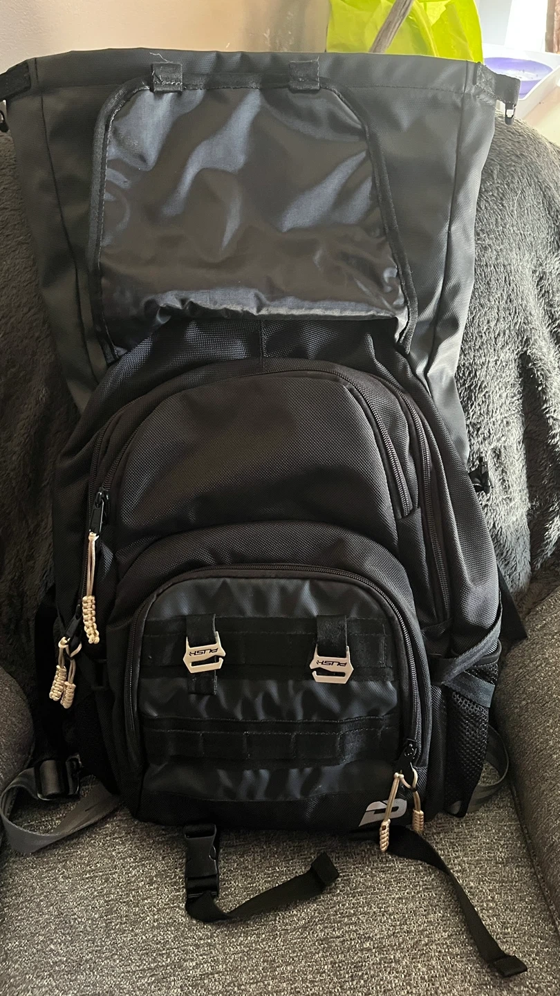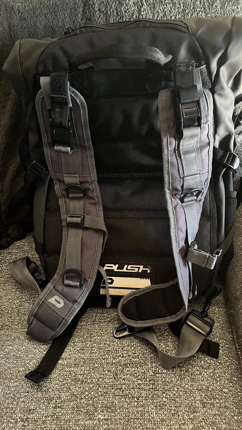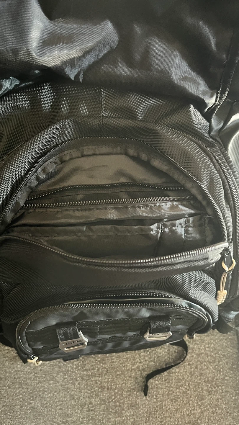 Selling a Tumi backpack in black. It has lots of compartments and is perfect for travel or everyday use. It's in great shape and ready for a new home!