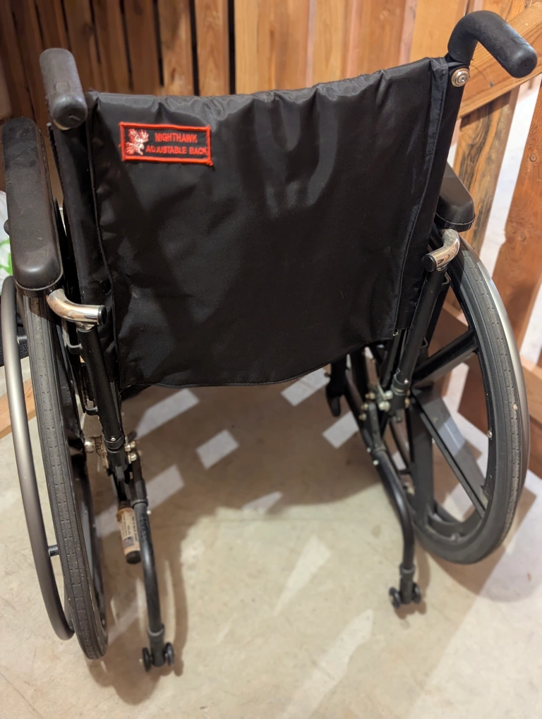 Selling a Quickie 2 wheelchair with a Nighthawk adjustable back. It's carbon fiber. It shows some signs of use, but is still lots of life left in it and still extremely functional. Perfect for someone who is in need of a wheelchair to assist them on their journey in life. Comes with one foot rest but you can buy replacements separately. *Willing to negotiate on the price, feel free to send your offers* *Cash Only Please* *Thank you for reading this description, I hope you have a wonderful day!* ๐