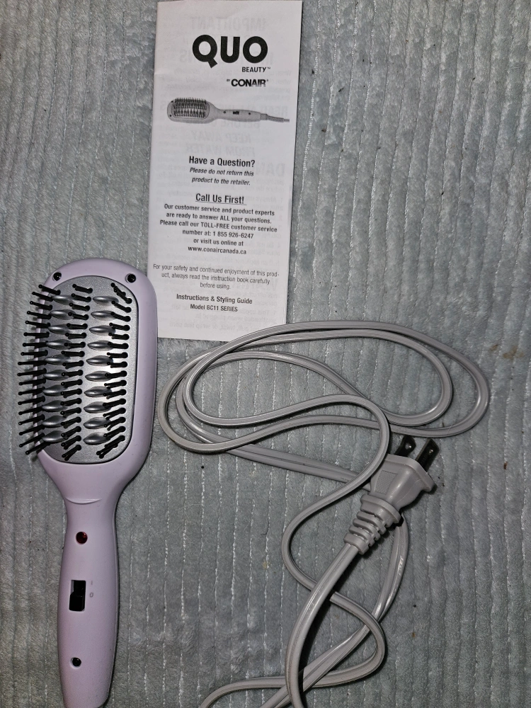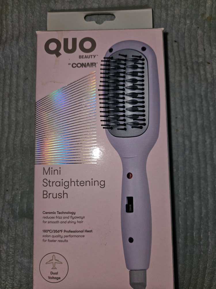 I'm selling a Quo Beauty by Conair mini straightening brush! It features ceramic technology that reduces frizz and flyaways. It also has 180°C/356°F professional heat for salon quality performance and faster results. Dual voltage is also a plus! Instructions and styling guide included