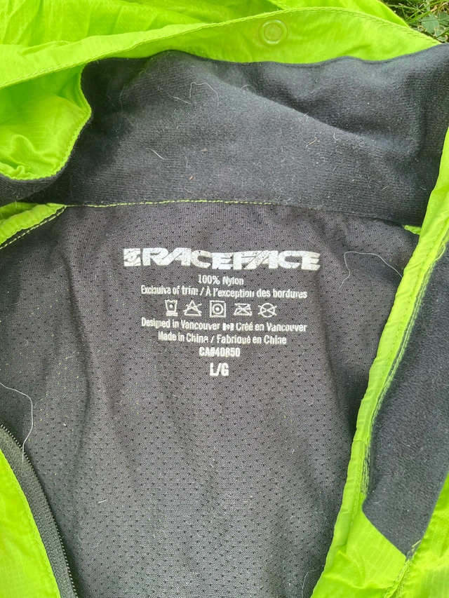 Up for sale is a Raceface cycling jacket, perfect for those wet and windy rides. This jacket is in good condition, ready to keep you protected from the elements. It's lightweight and packable, making it an ideal companion for any cycling adventure. Here are some features: * Brand: Raceface * Size: Large * Colour: High-Vis Green * Material: 100% Nylon I'm asking $20, but I'm open to reasonable offers. Similar jackets from Raceface and other brands are selling for $60-$100 on Kijiji, so this is a great deal! If the ad's still up, the jacket is still available—no need to ask! Get ready to ride in style and comfort.