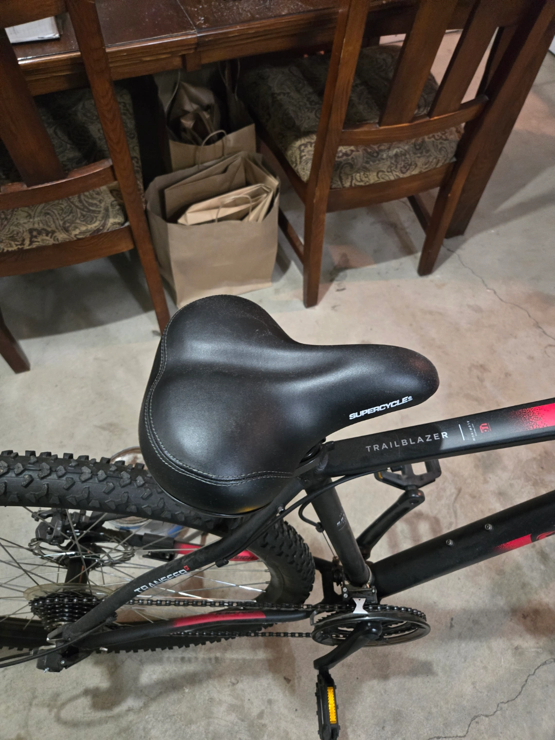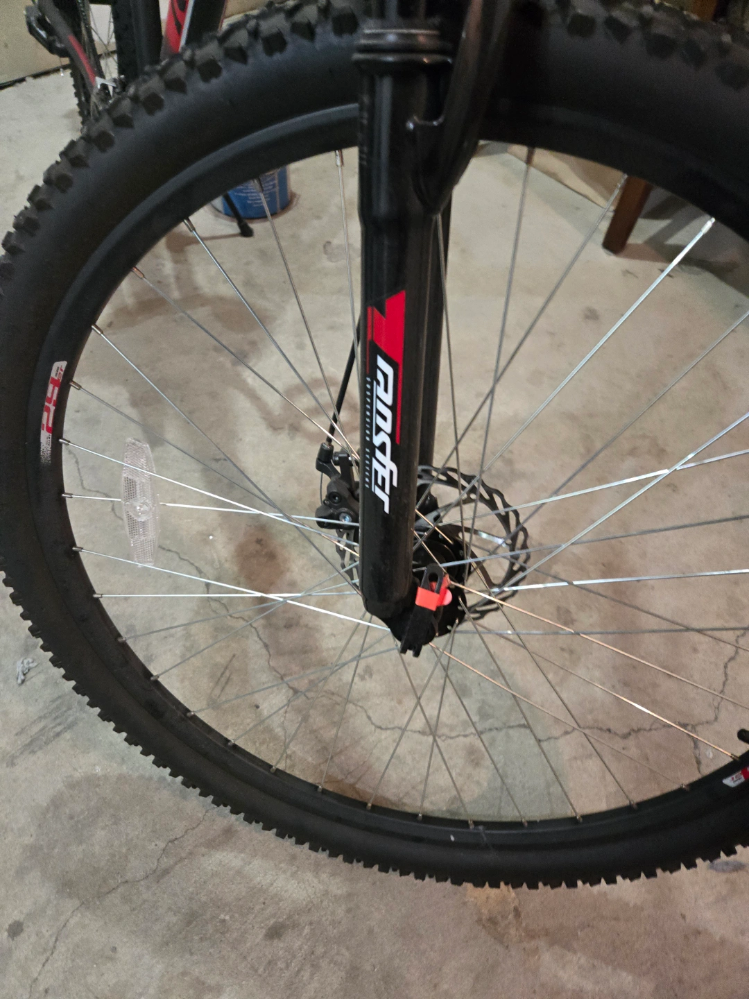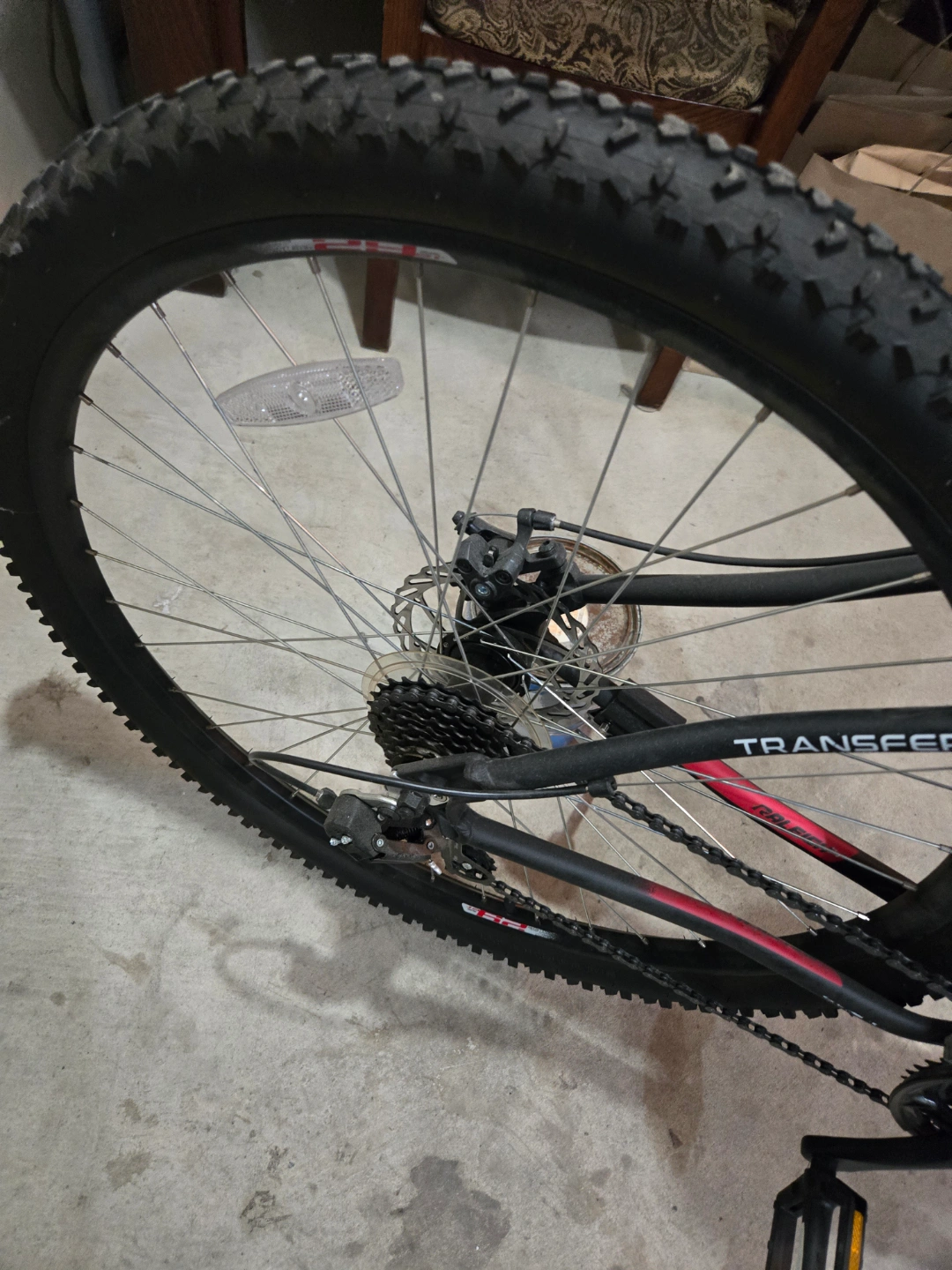 21 speed 29 inch Raleigh trail bike with pump n lock n air ride seat Disc brakes tires are easy to come off