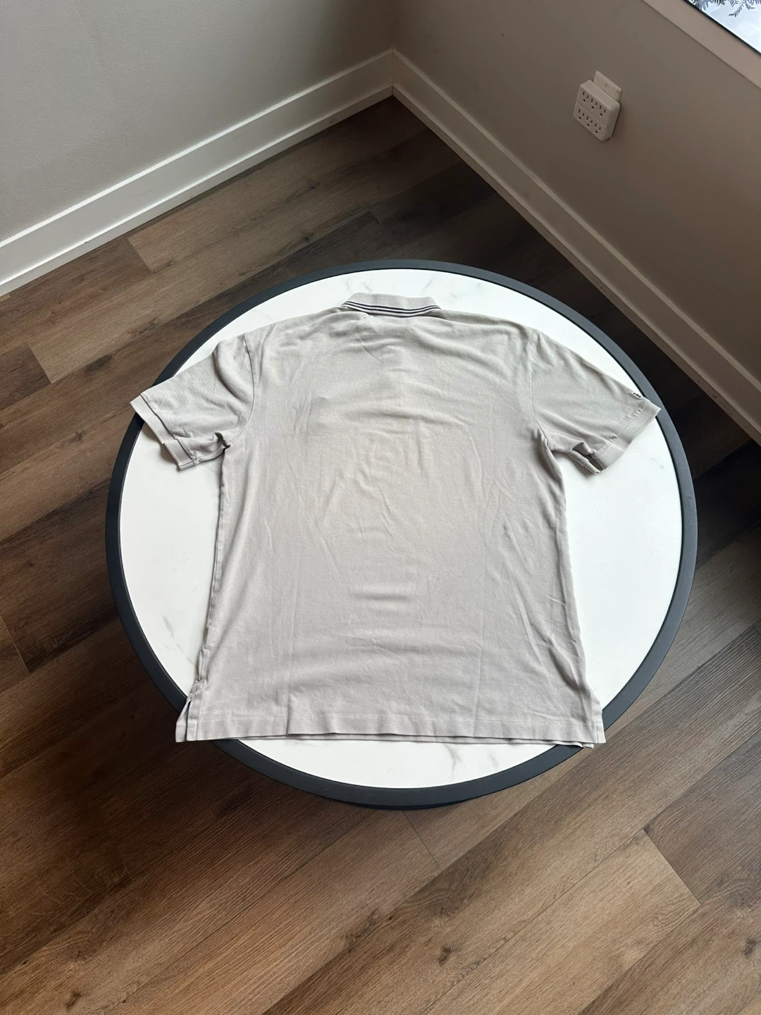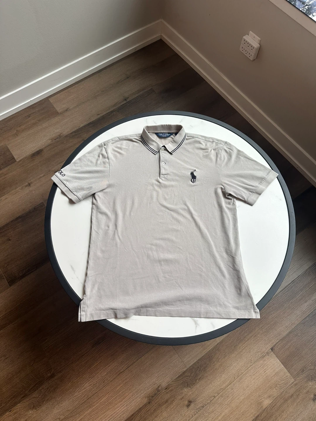 A classic Ralph Lauren polo shirt in a neutral beige colour. It's in great condition and ready for a new home. Perfect for a casual or semi-formal look!