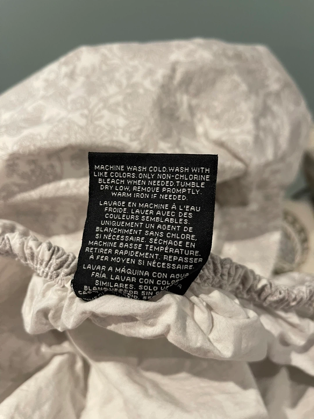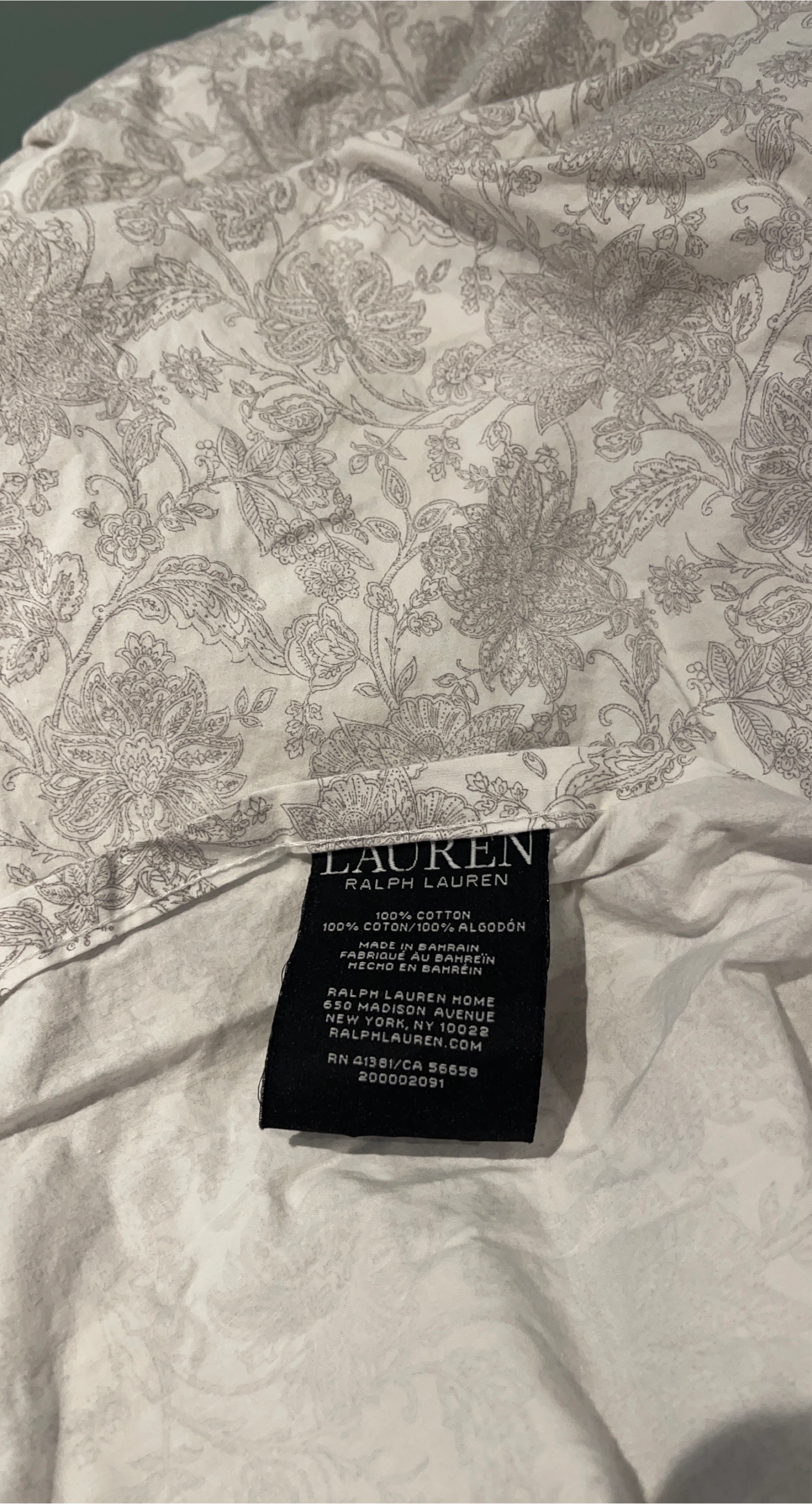 Here's a Ralph Lauren full set Queen size sheet. It's 100% cotton and features a pretty floral pattern. Easy to care for, just machine wash cold and tumble dry low. Missing one pillow case
