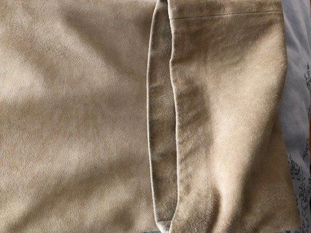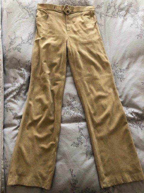 Size 8 (but more like 6) tan butter soft REAL suede pants. 100% acetate lining. Gently worn and well taken care of. The inseam is about 30 inches. Two functional front pockets. There are some scuff marks on the inside hem of the pant legs that is not visible from the outside. From a pet and smoke free home. Pickup only in the St. Lawrence market area of downtown Toronto. Cash only.