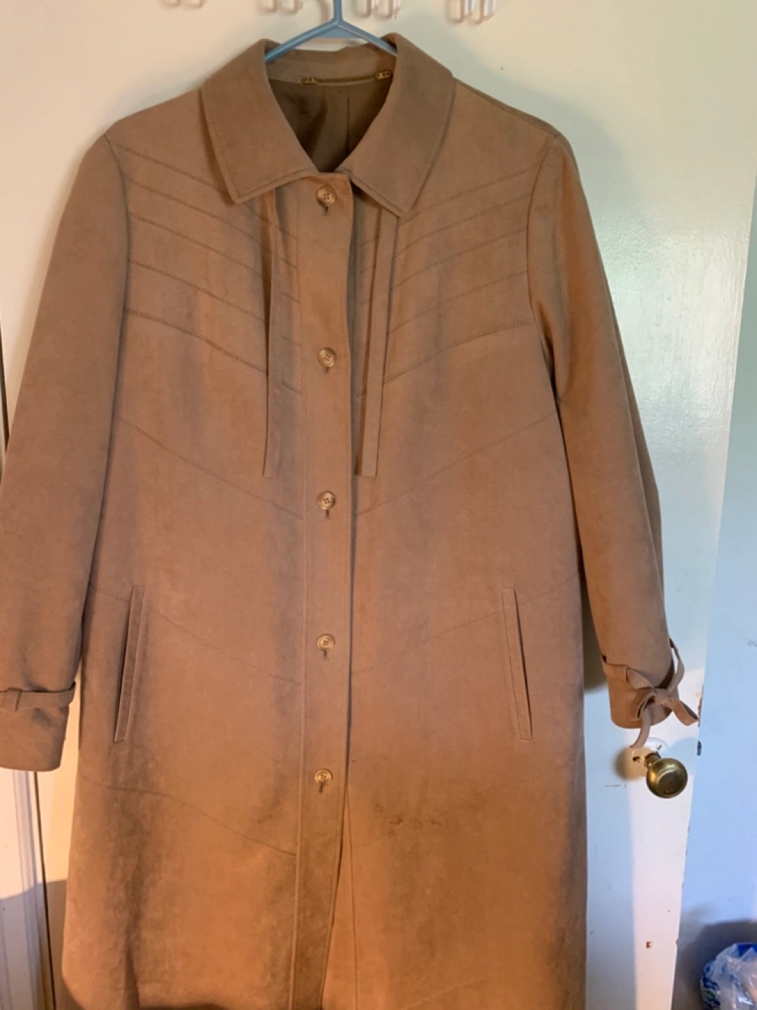 Here's a stylish Ralph Lauren suede coat! It's in great condition and ready for a new home. The coat has a classic design and is perfect for adding a touch of elegance to any outfit
