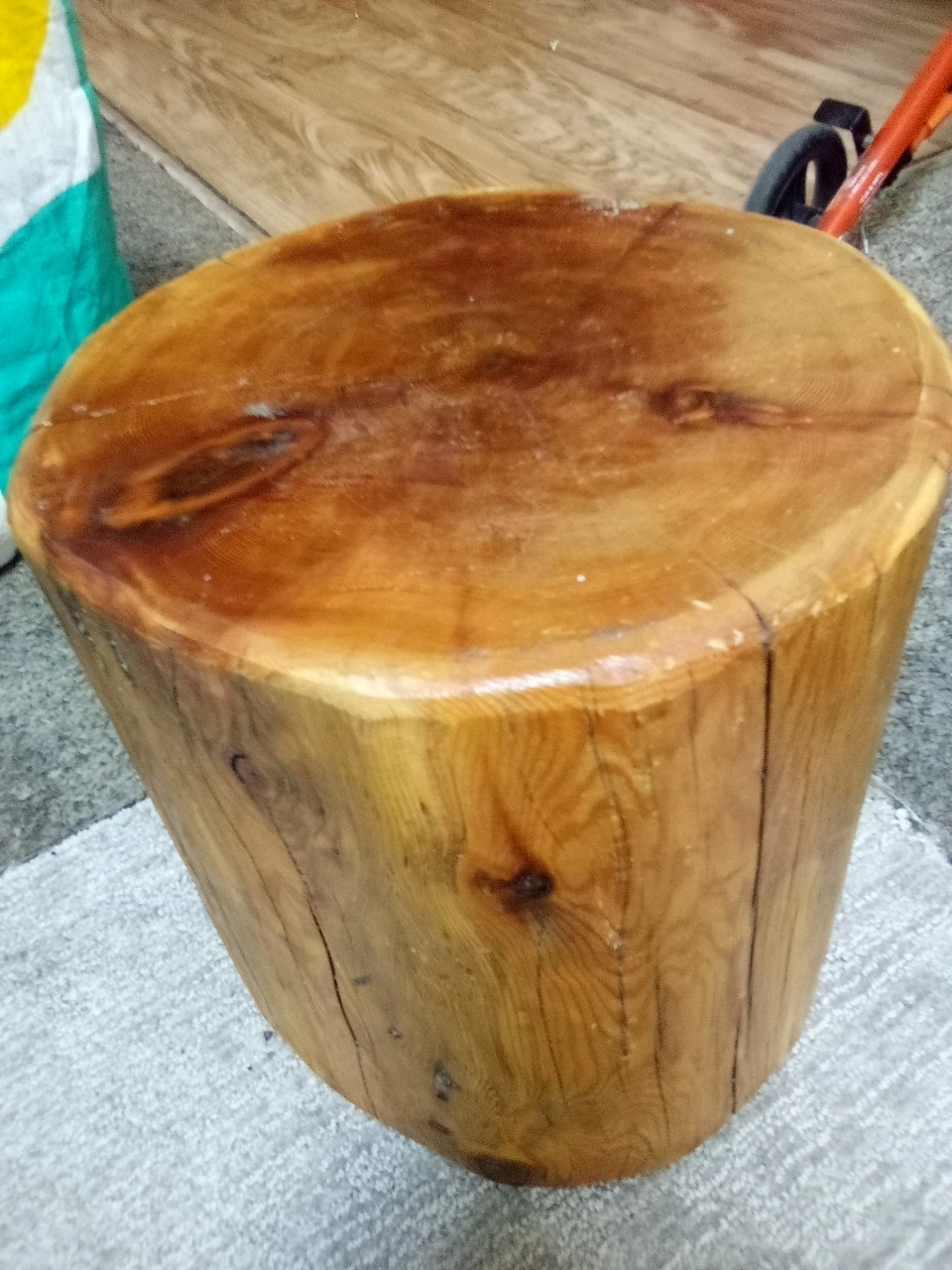 over a 100 + year old log made in to many things end table night stand show peice stump kids table seat foot rest just want to rest log need it gone