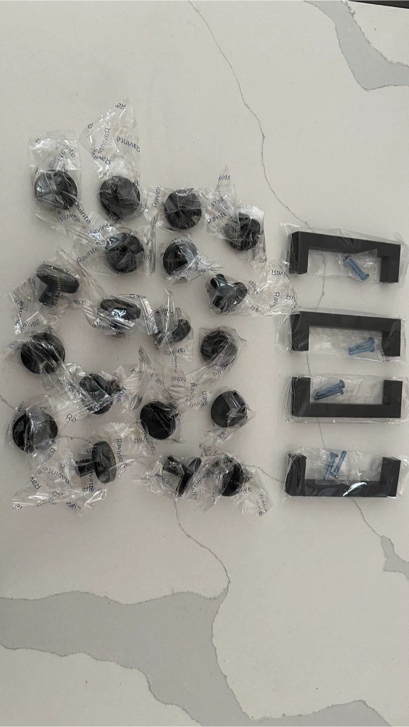 Selling a set of Ravinte cabinet hardware, including knobs and pulls. They are all brand new and still in their original packaging. Perfect for upgrading your kitchen or bathroom cabinets! 19 knobs and 4 pulls Porch pickup Smoke free home East York