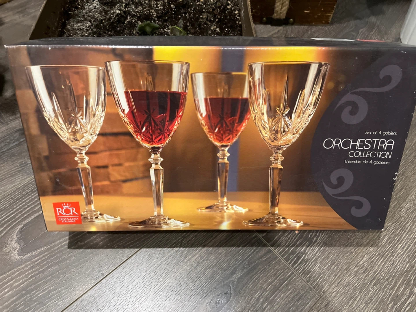 đŸ¥•Selling a set of 4 RCR Cristalleria Italiana Orchestra Collection goblets! They're in excellent condition and come in their original box. These beautiful crystal glasses would be perfect for adding a touch of elegance to any occasion