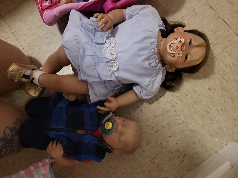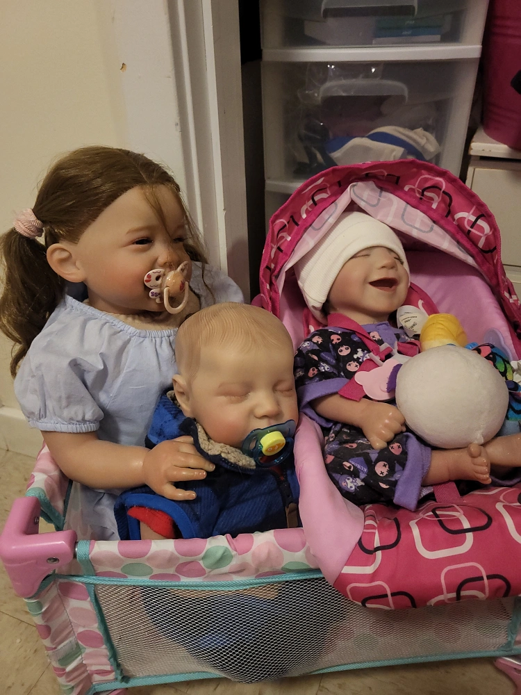 Selling a set of three reborn baby dolls. They come with accessories such as pacifiers, bottles, and clothing. Perfect for collectors or anyone who loves realistic dolls!