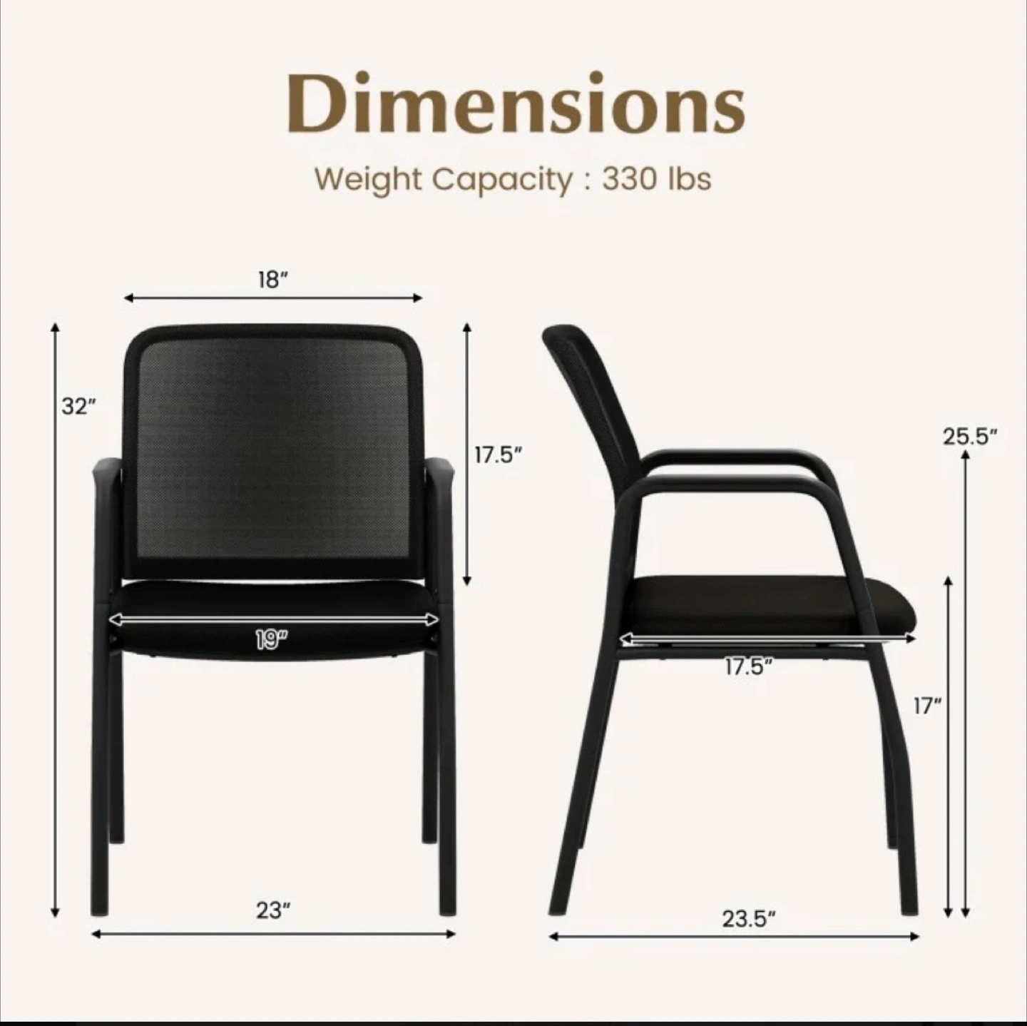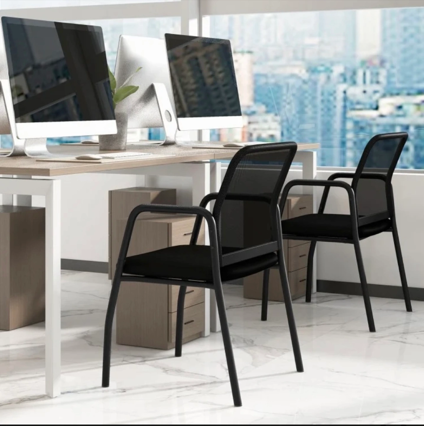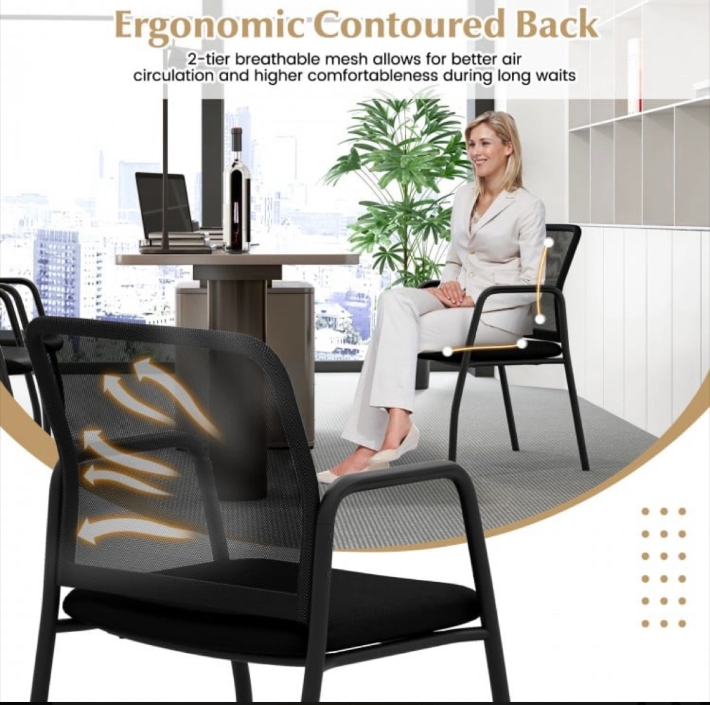 Key Features • Stay Cool, Comfortable Support: Experience the perfect blend of ergonomic design and breathability with the waiting room chair with contoured, 2-tier mesh backrest. Sit back and relax - no more sweating through those long waits! • Long-lasting Comfort at Your Service: Settle into the sturdy embrace of the office guest chair with sleek integrated armrests, crafted for resilience and comfort. Enjoy a posture-perfect, relaxed seating experience that lasts! • Cushioned Bliss for Long-Term Use: Indulge in the soft padded seats, wrapped in breathable mesh and cushioned with plush sponge. The reception chair will provide a fatigue-fighting, all-day comfort you’ll love. • Robust Structure for Reliable Usage: With a heavy-duty metal frame, these reception chairs are crafted for durability and stability, suitable for high-traffic waiting areas. Additionally, the non-slip foot pads also help to enhance stability and prevent unsightly scratches.