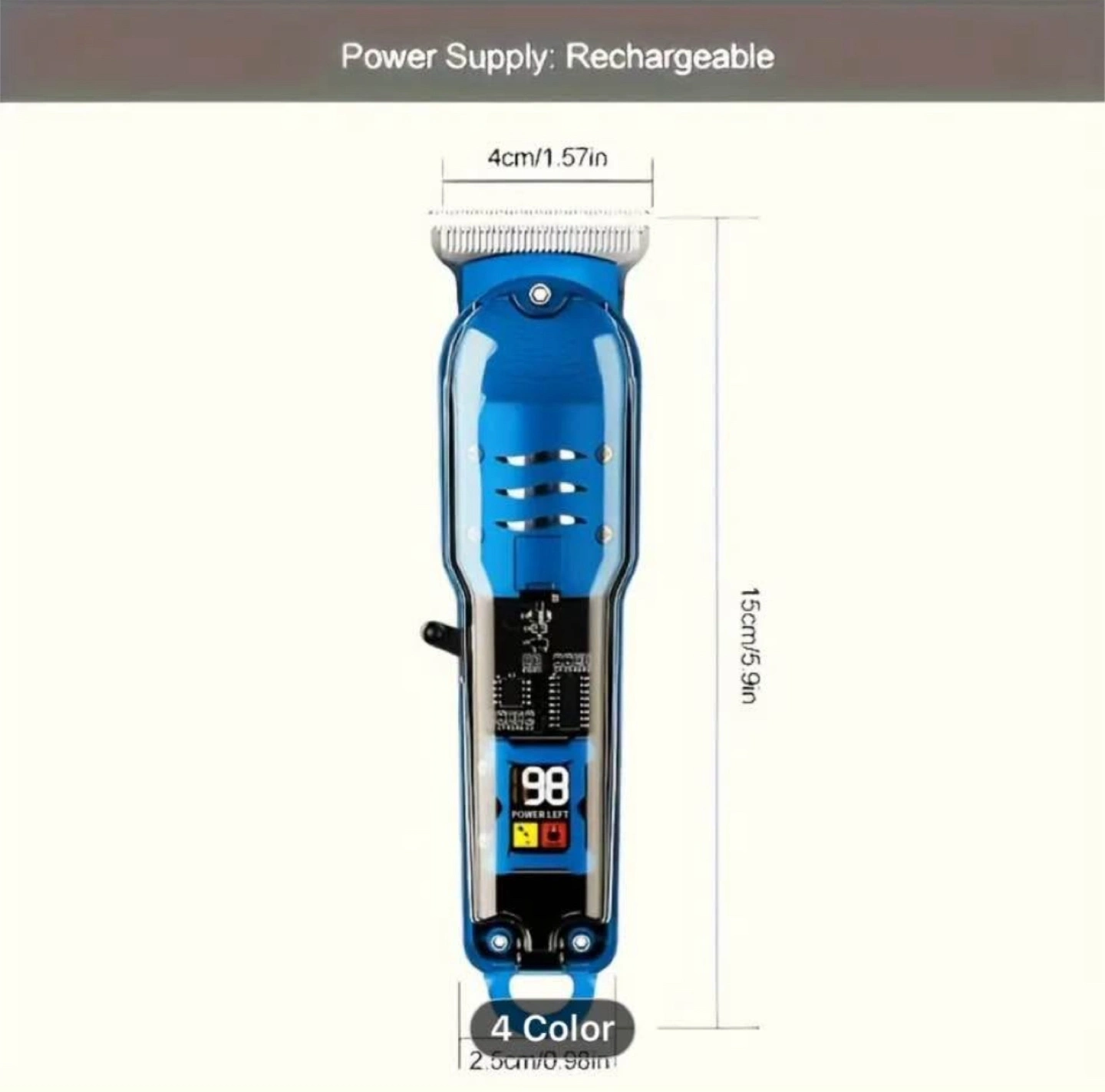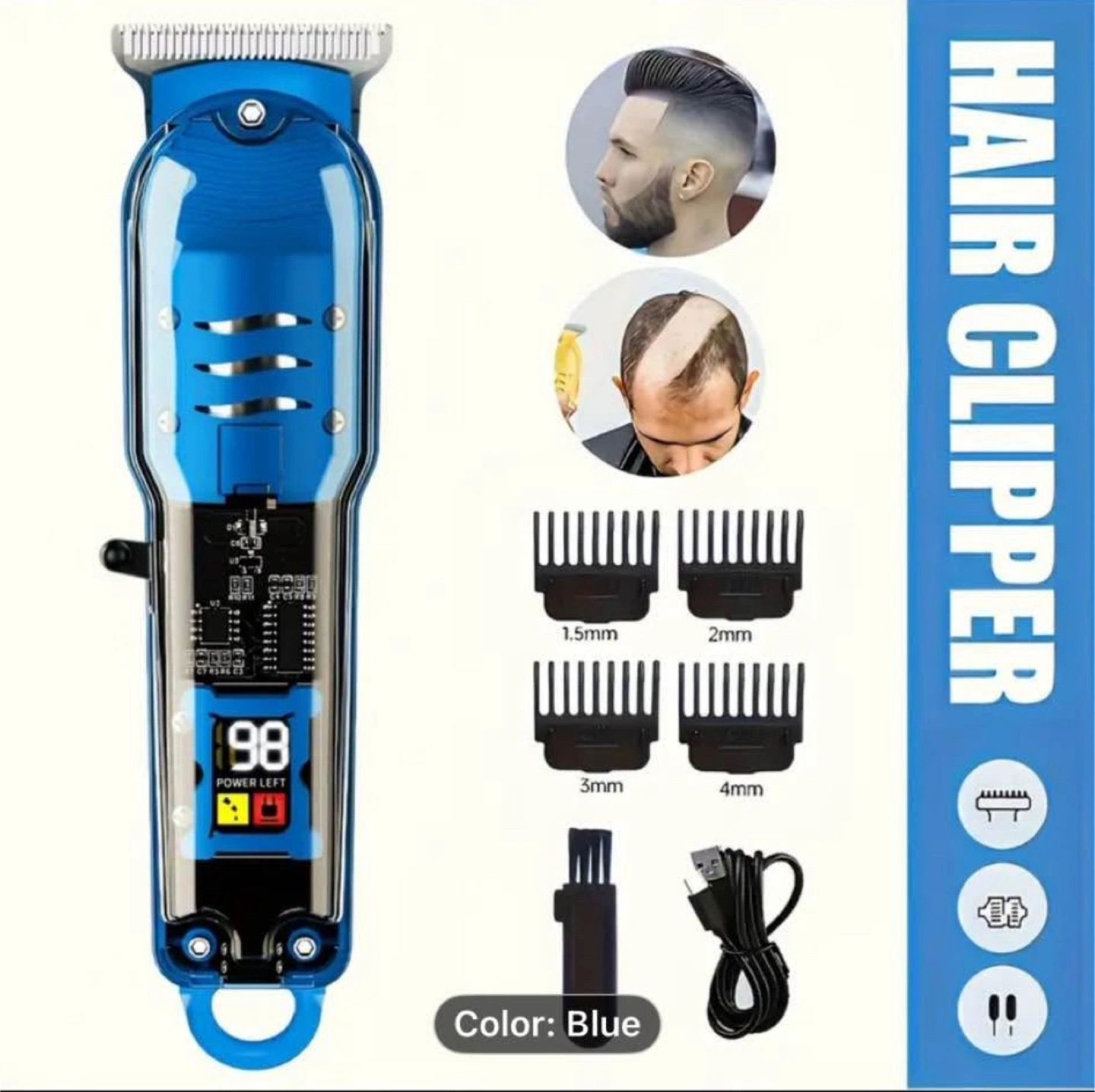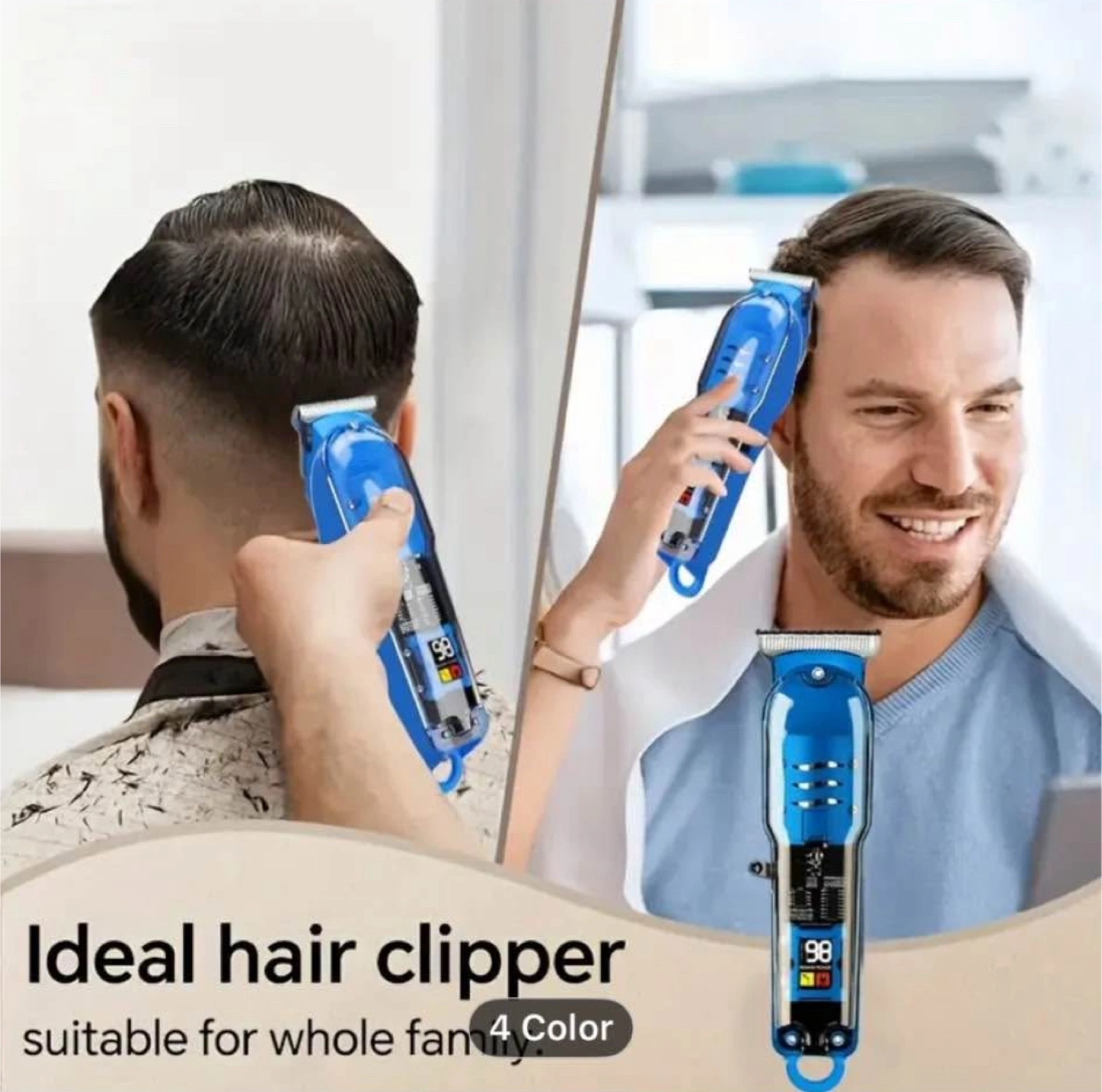 Rechargeable Professional Electric Hair Clipper, Transparent Shell Shaped Hair Trimmer, Cordless Portable Haircut Kit for Men Women Salon, with LED Display Screen