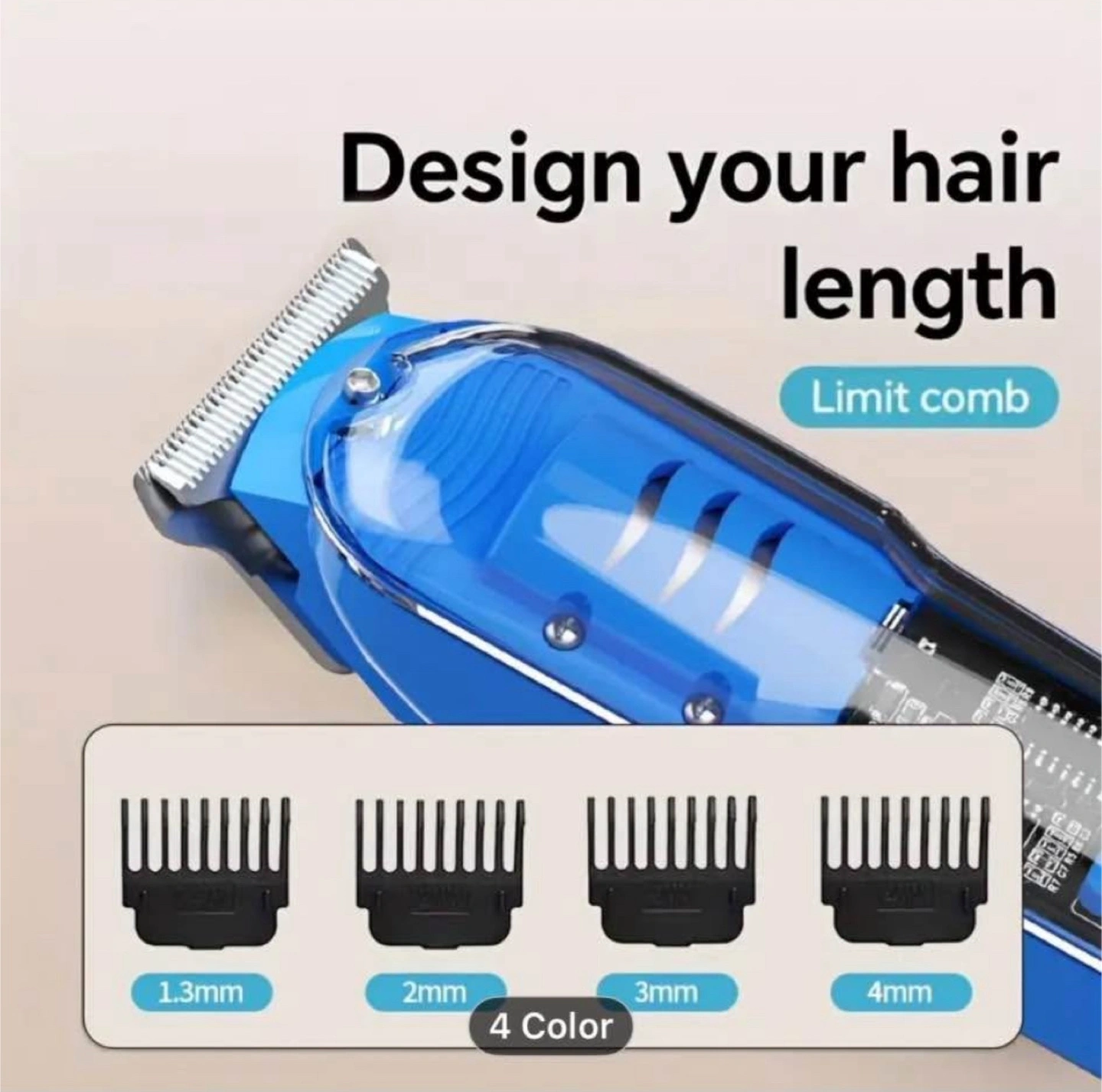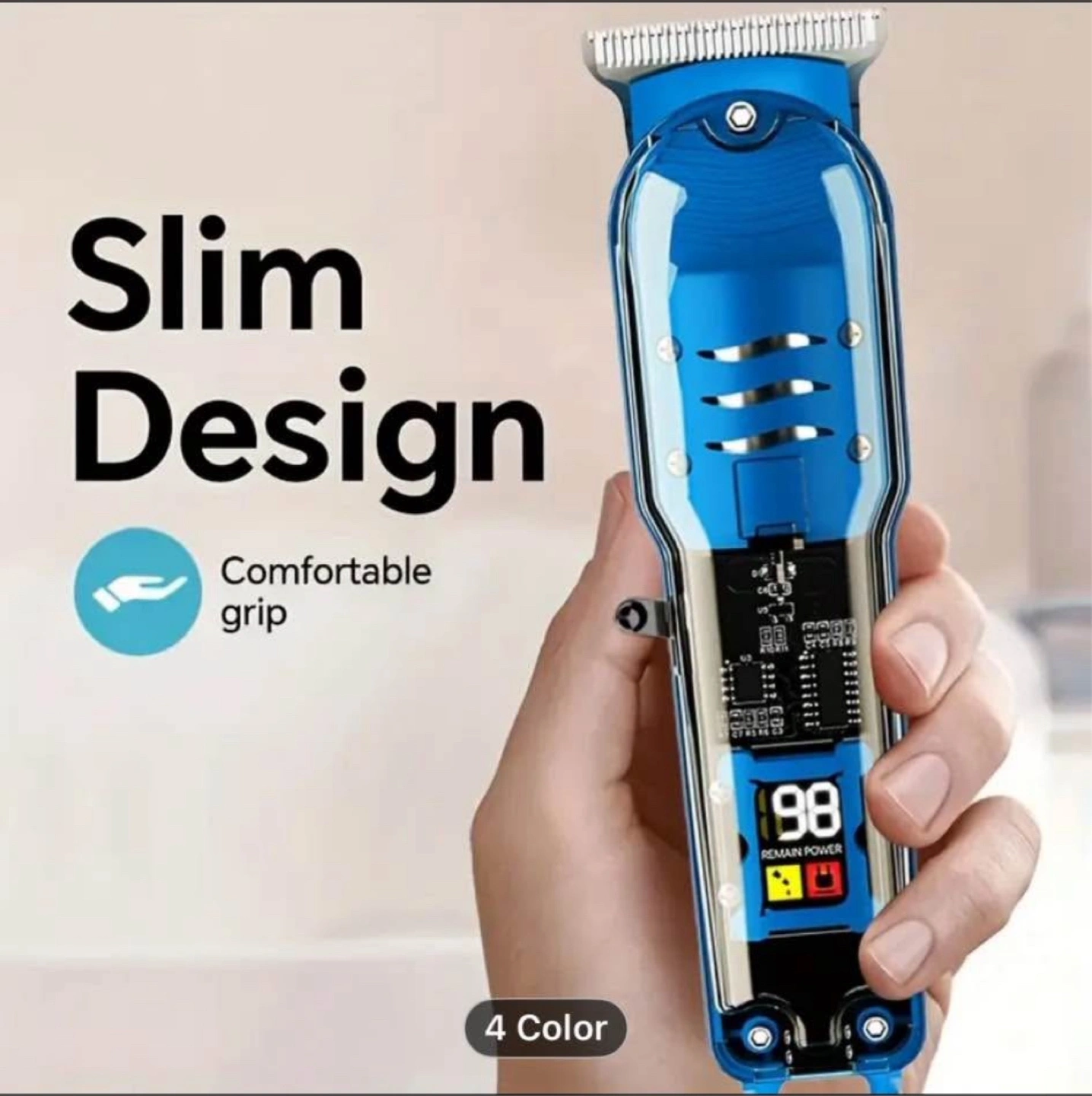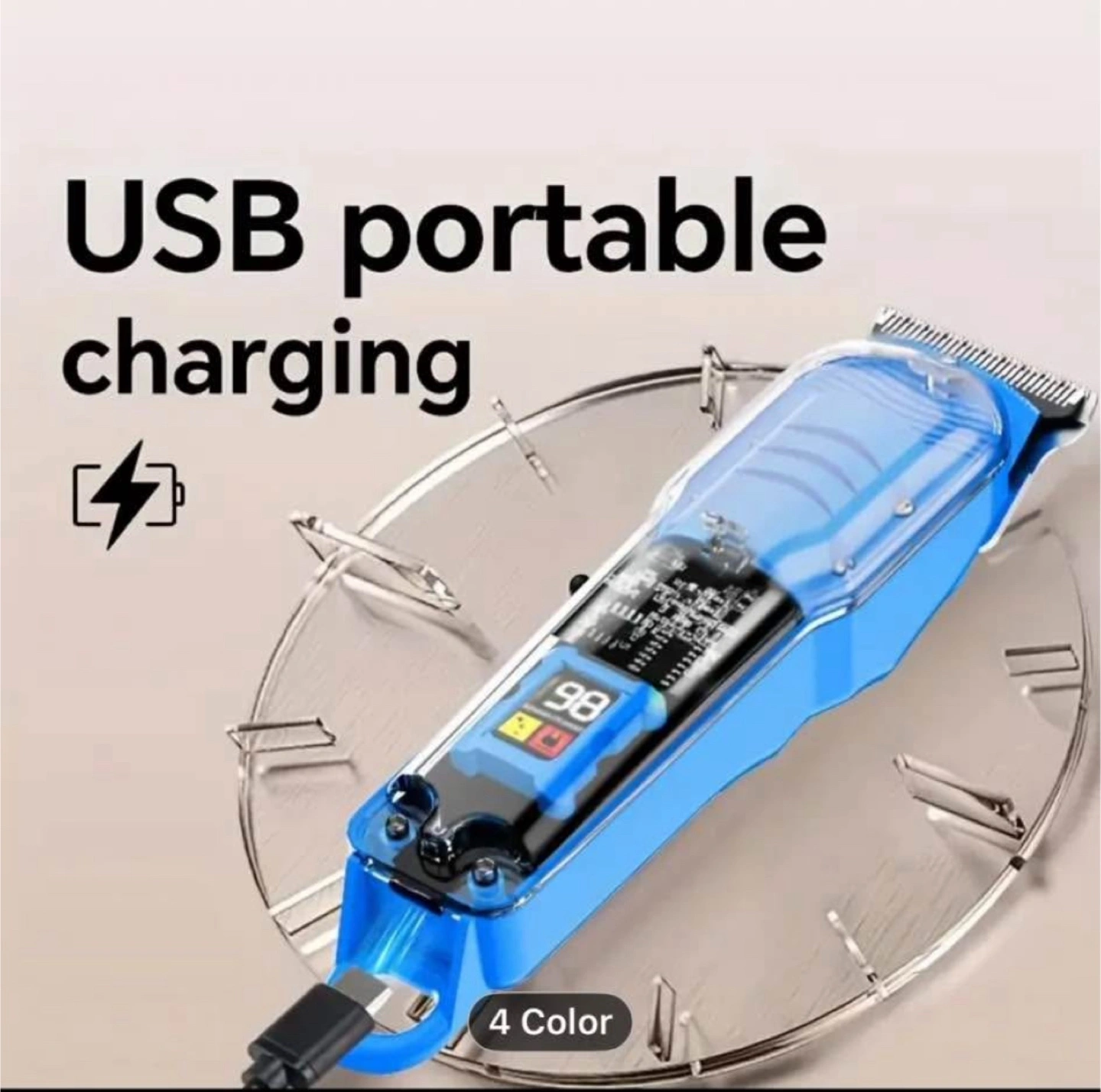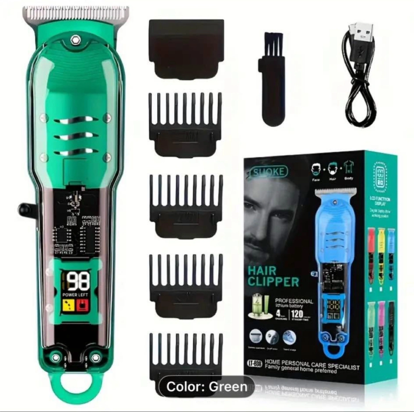 Rechargeable Professional Electric Hair Clipper, Transparent Shell Shaped Hair Trimmer, Cordless Portable Haircut Kit for Men Women Salon, with LED Display Screen
