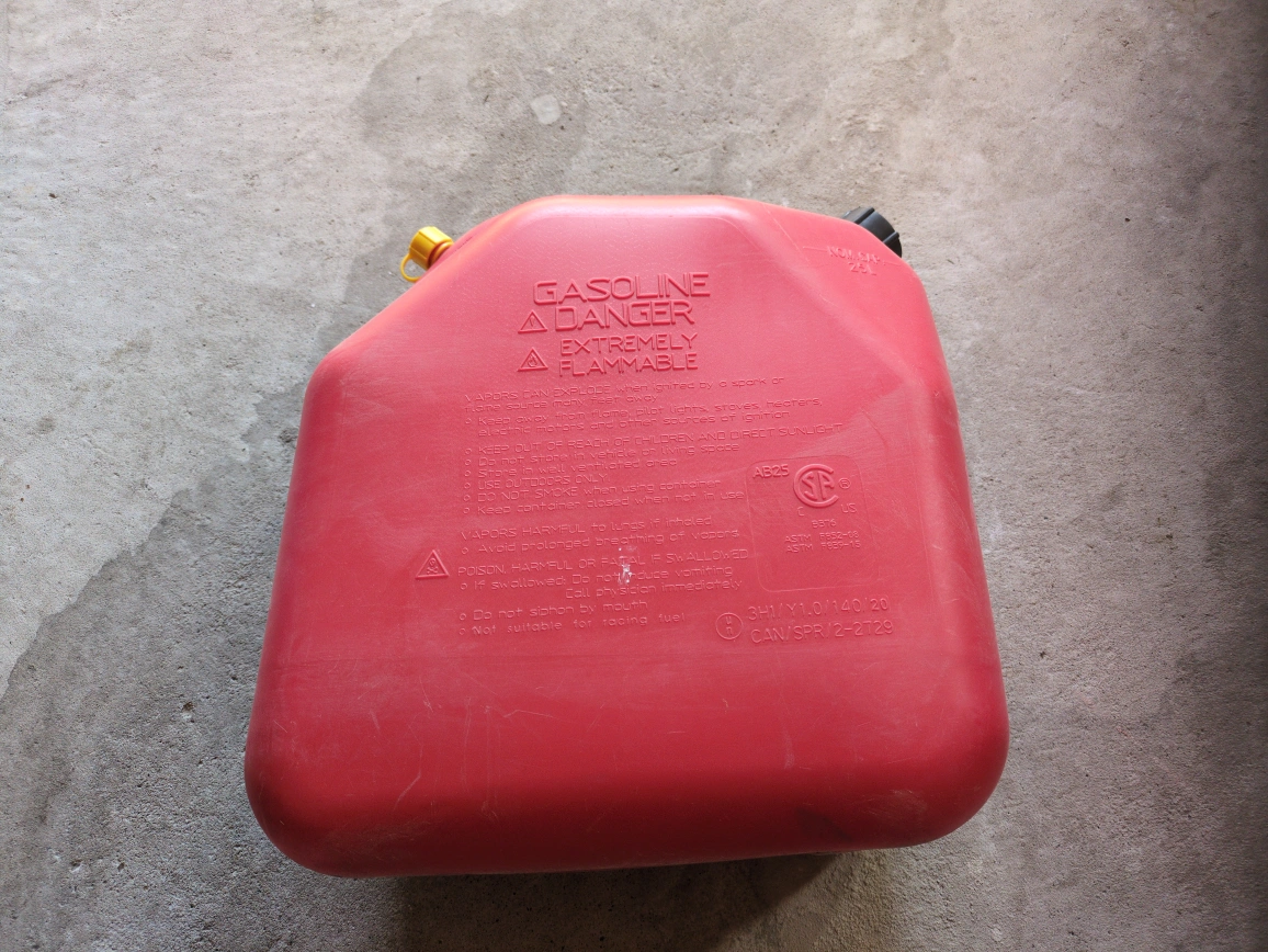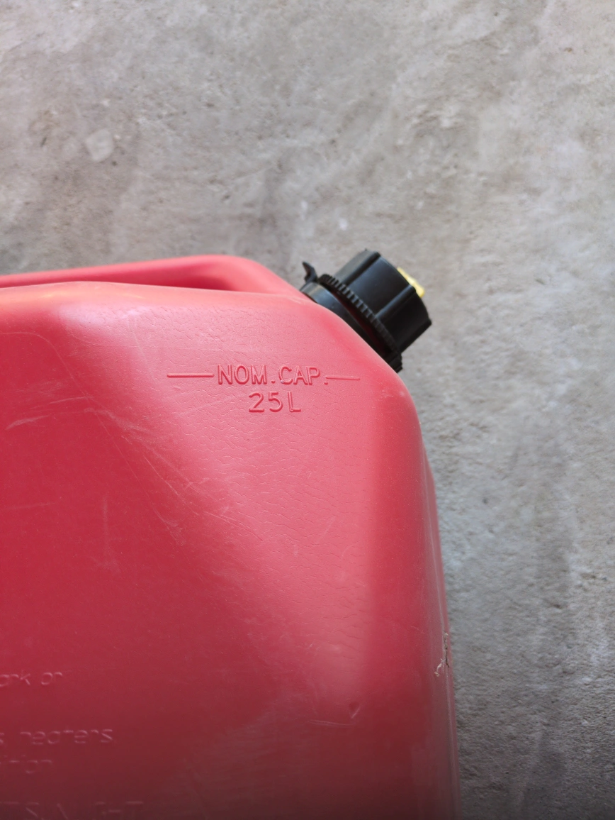Selling a red gasoline can with a 25L capacity. It's in good condition and ready for use. Perfect for storing fuel for your lawnmower, snowblower, or other equipment