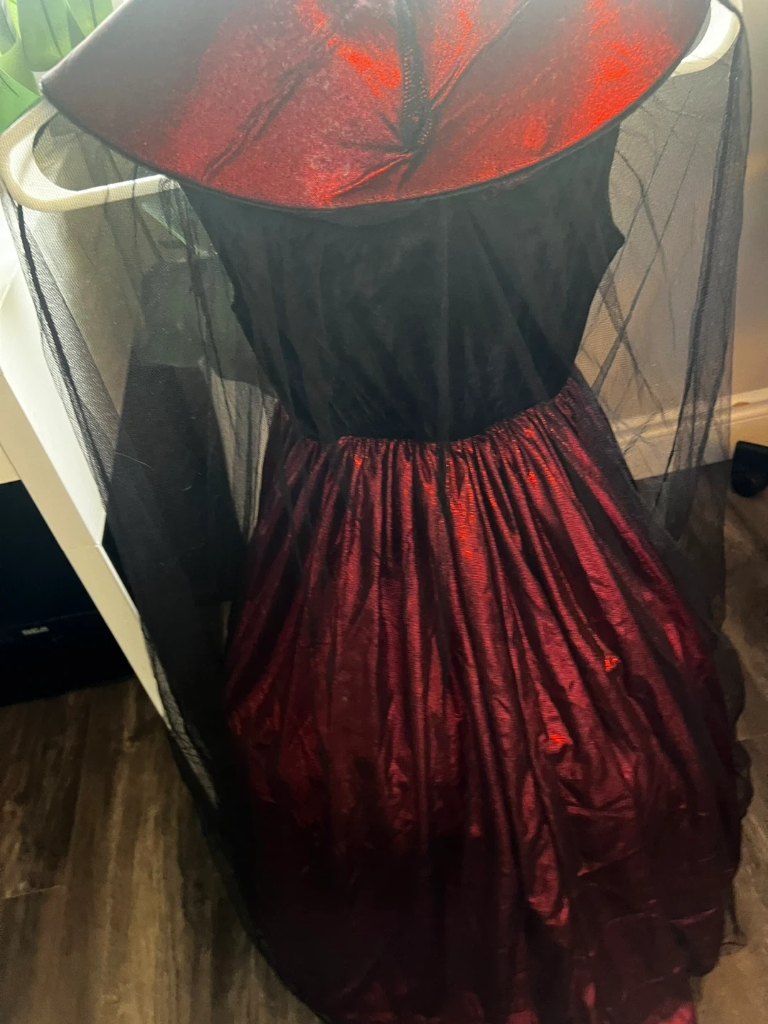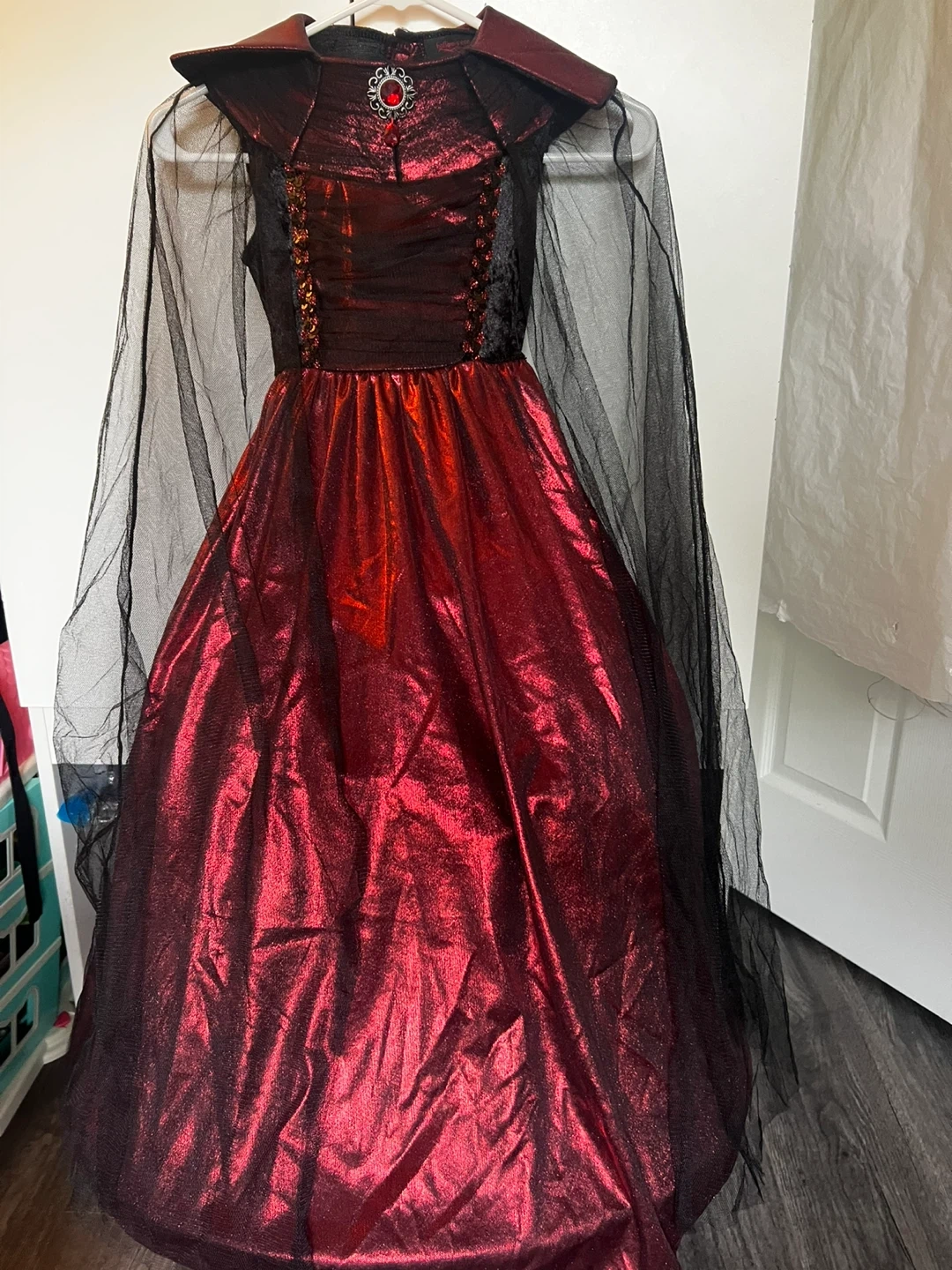 Selling a vampire costume, perfect for Halloween or dress-up! It features a red and black colour scheme with black tulle accents. Great condition and ready for a new home. Suitable for 6-8 years old