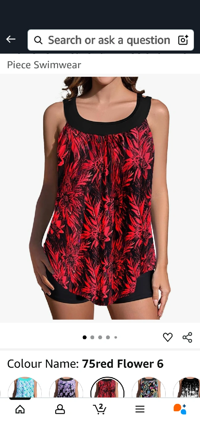 Selling a cute tankini swimsuit top with a red and black floral pattern. It's in great condition and ready for the pool or beach!