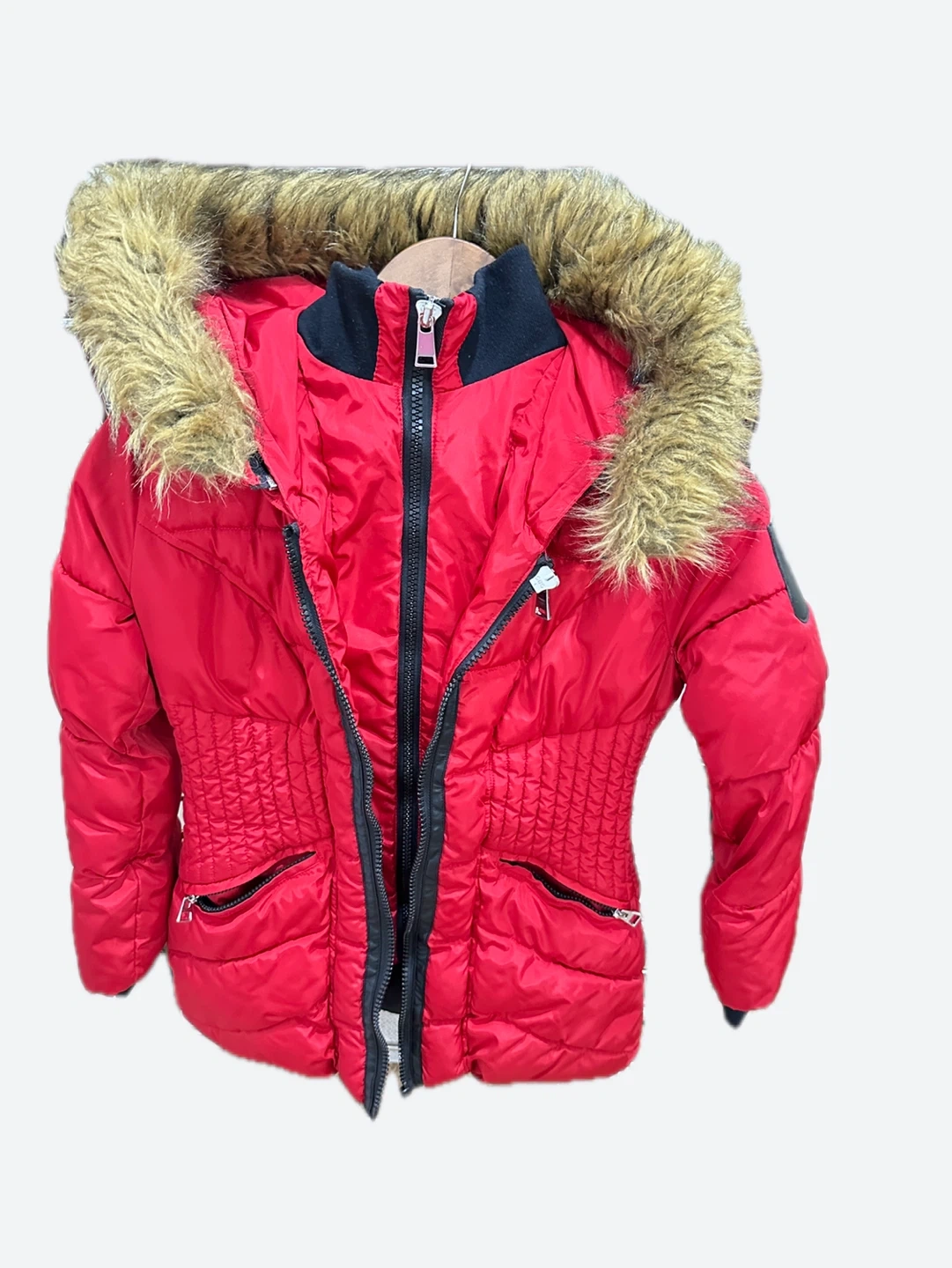 Show allRed Puffer Jacket with Faux Fur Hood- size 8-10 years