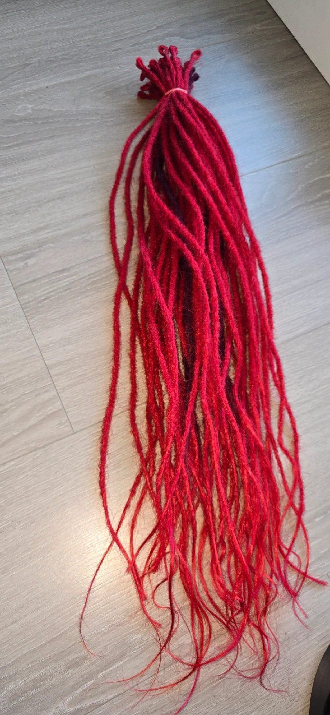 Selling a set of red synthetic dreads. They are in good condition and ready to be installed! 45 strands