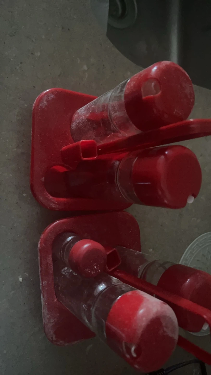 Selling a red spice rack. It appears to be in used condition, with some visible wear and tear. Perfect for organizing your spices!