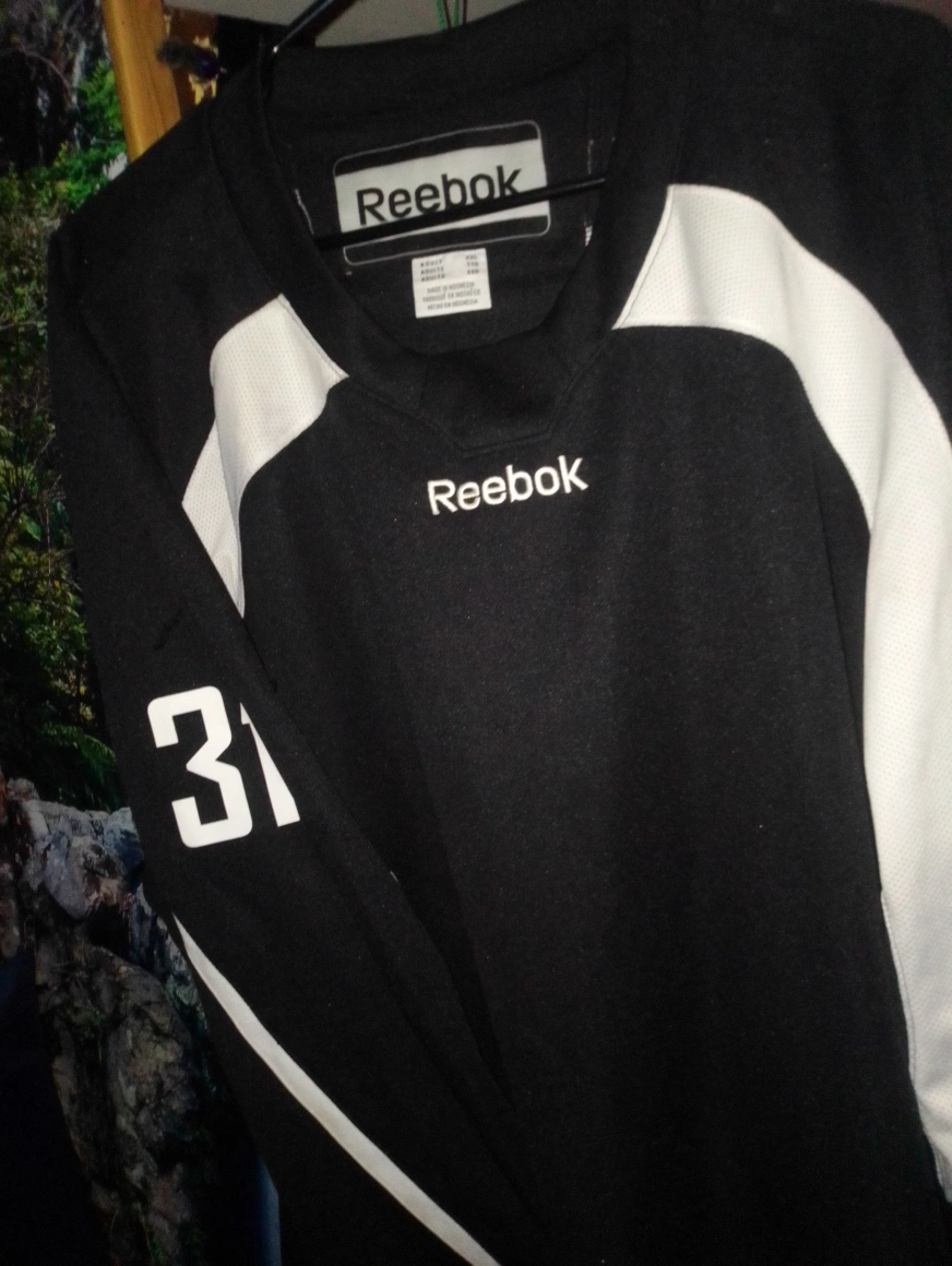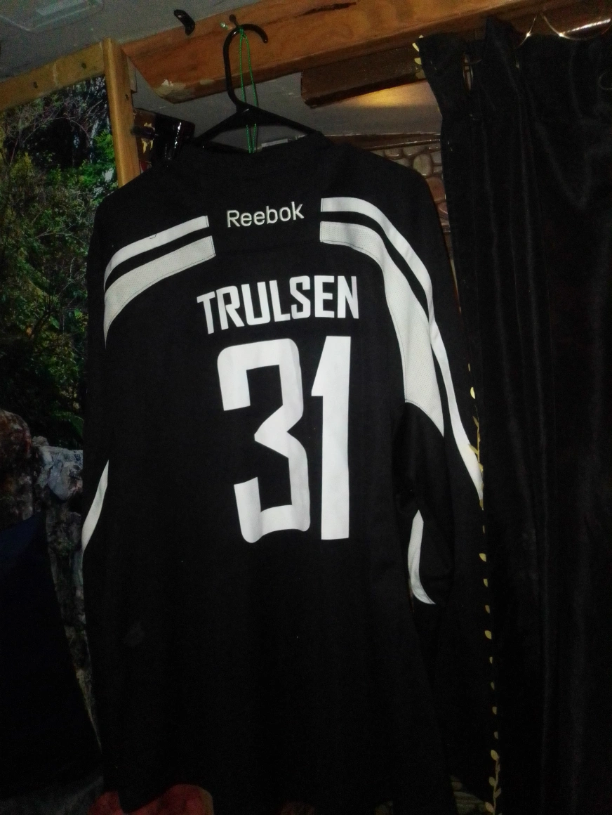 Selling a Reebok hockey jersey with the name Trulsen and the number 31 on the back. It's black with white accents. Great for any hockey fan!