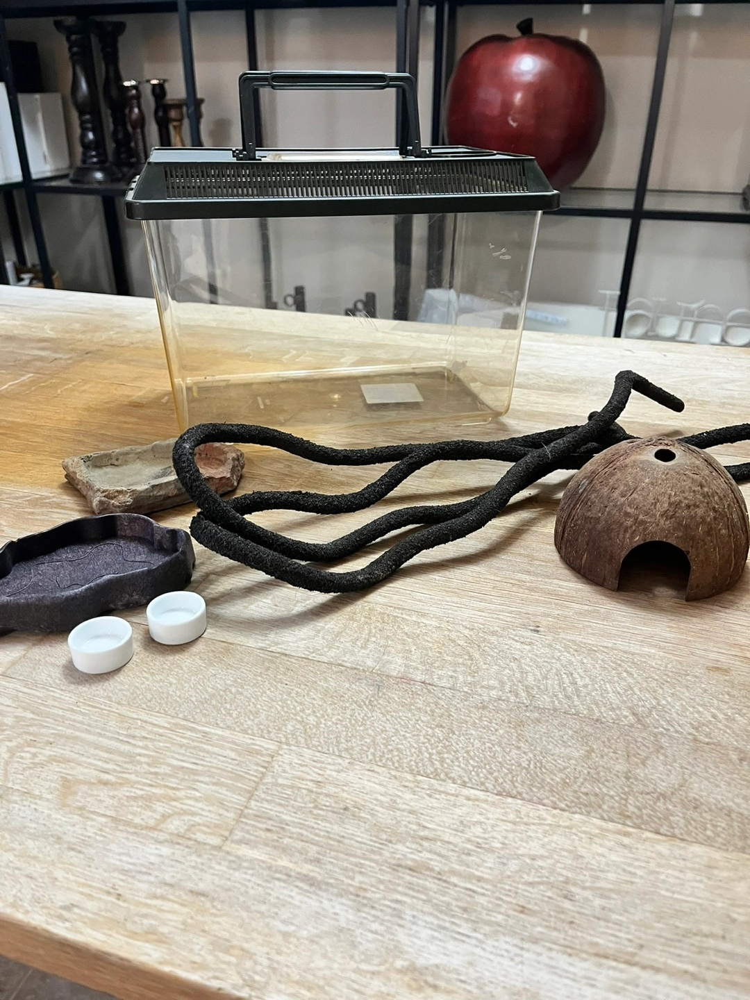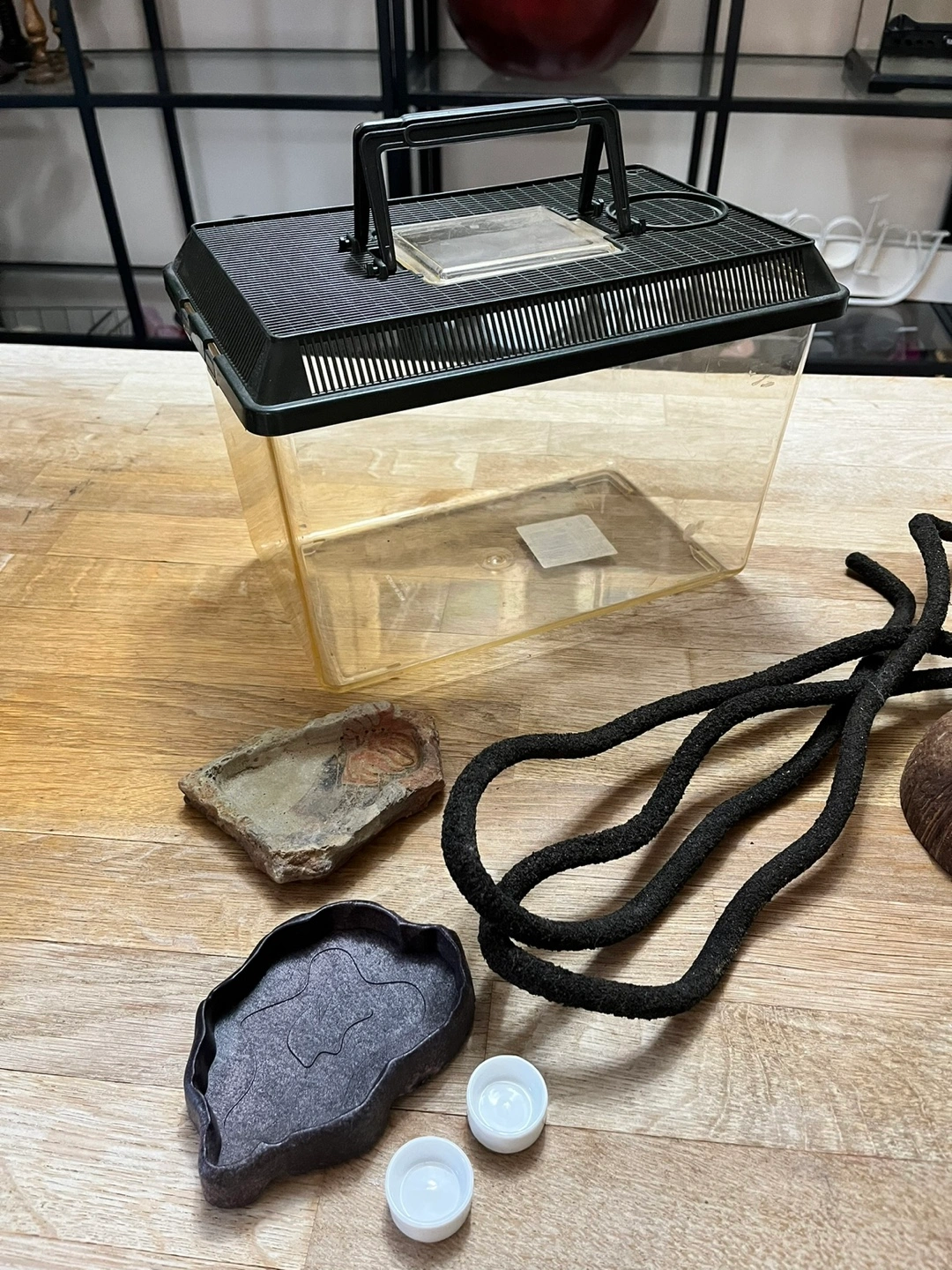 Used items sold separately or bundle: Cricket keeper $15 (11.75” L x 7.75” H x 7.5” W Feeding dishes $2/each (4.75” x 3.5”) Miniature feeding bowl $1/each (1” H x 0.5”) Coconut hut $4 (3” H x 4.25”) Reptile vine $4 (72” L) Or take all for $24 Located in Mayland Heights, Calgary (NE) First come first served No holds without e-deposit No delivery Prices are firm