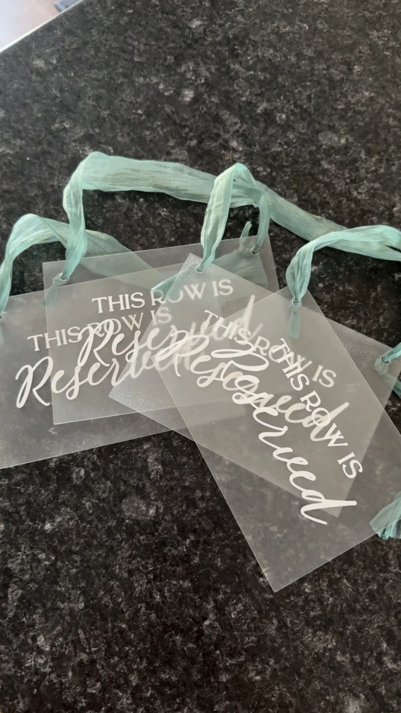 Selling reserved row signs for wedding decor. These are perfect for designating seating at your ceremony or reception. They add a touch of elegance and ensure your special guests have a place to sit. Great for weddings or other events!