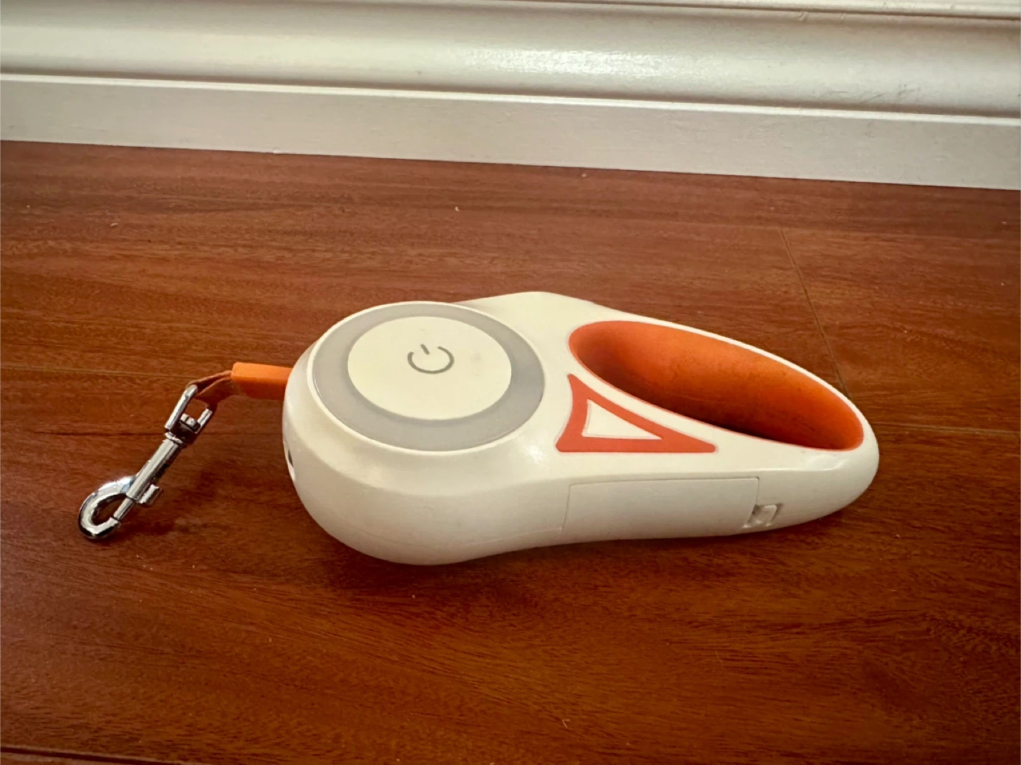 Retractable, and the leash has a sturdy metal clip. Good for keeping your furry friend safe and secure.
