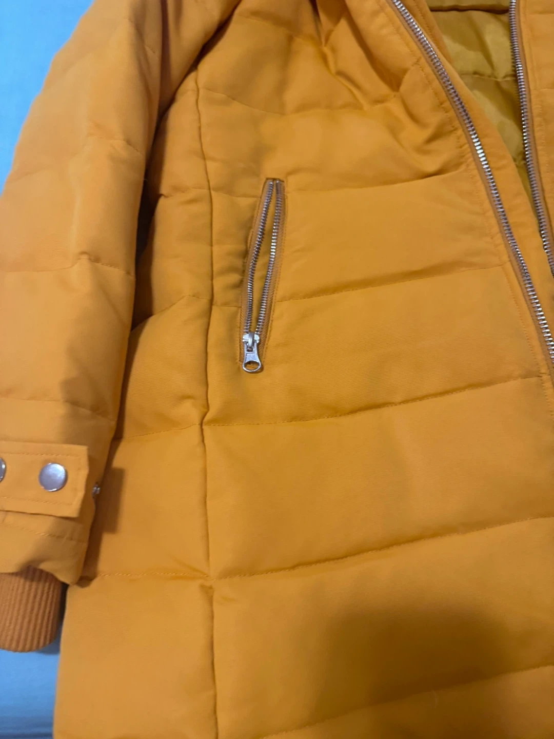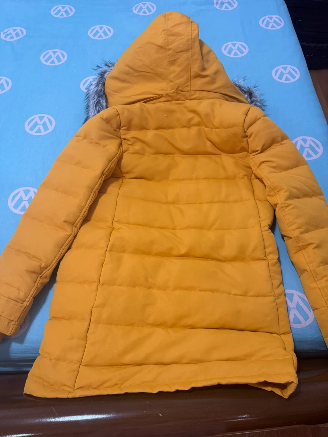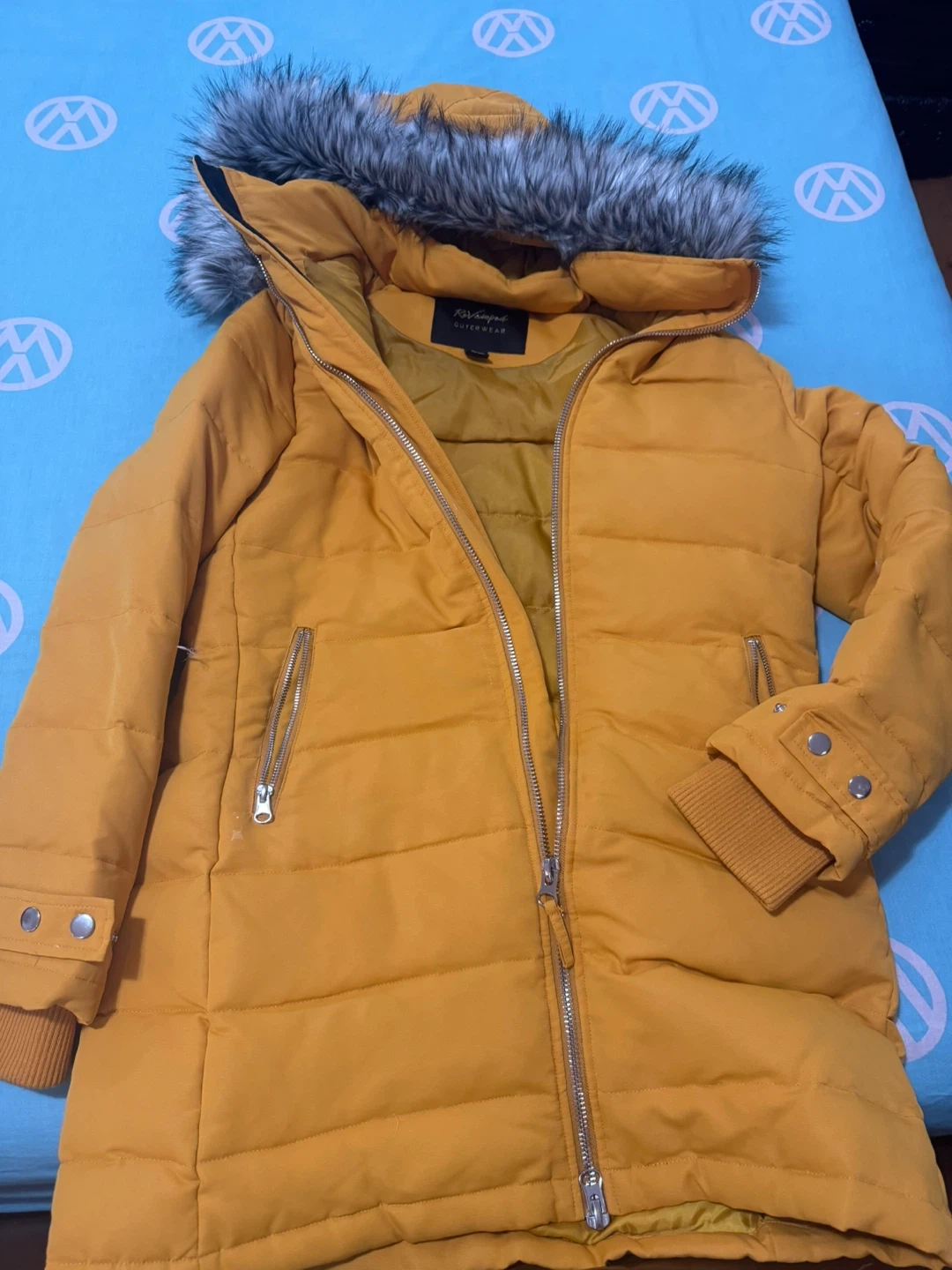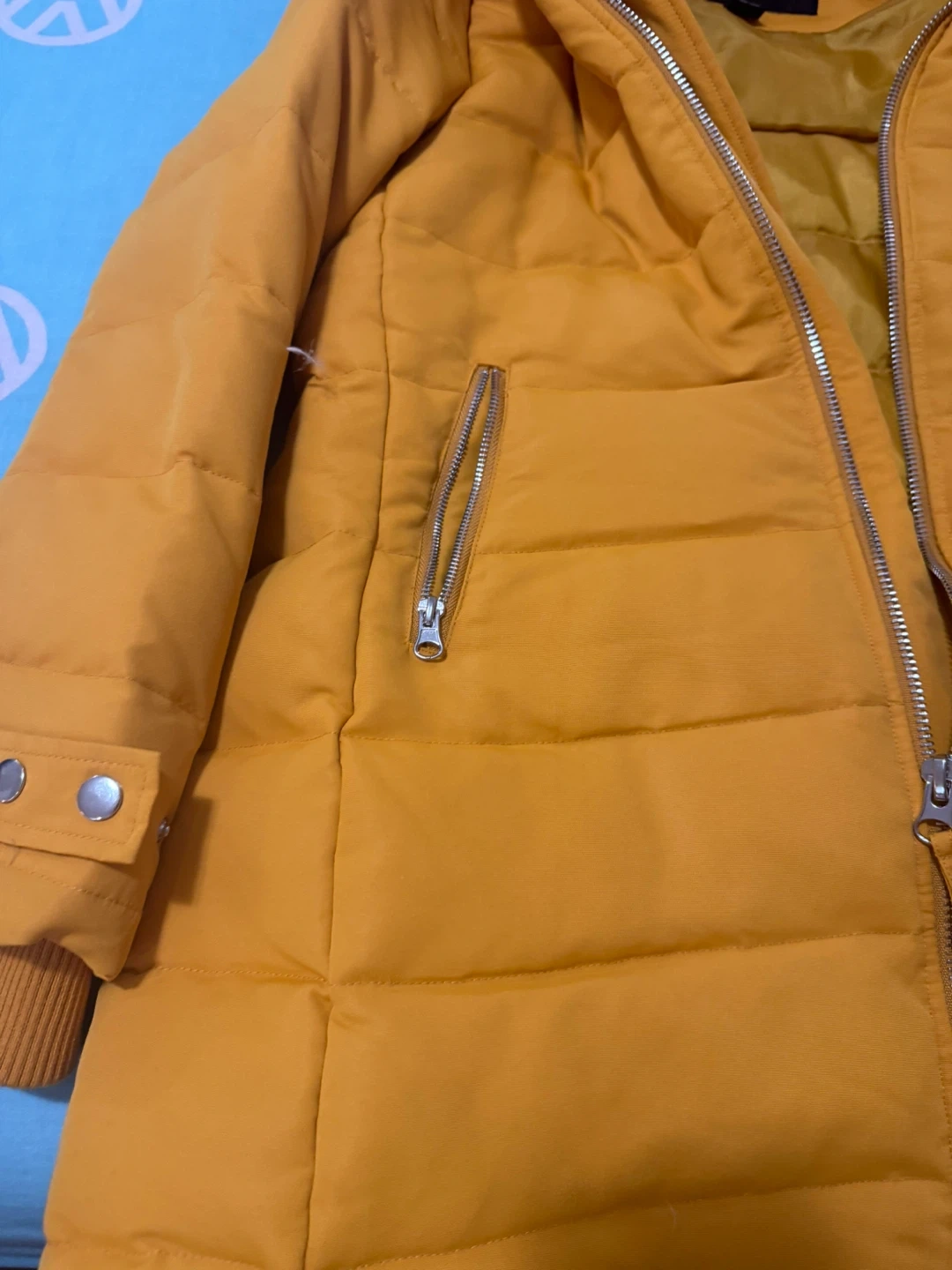Selling a ReVamped Outerwear puffer jacket in a vibrant yellow colour! It's a size M/M and features a faux fur hood. Perfect for staying warm and stylish during the colder months!