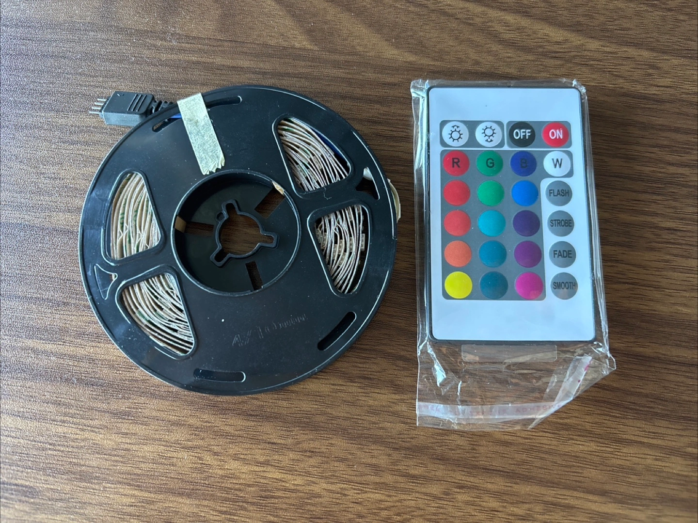 Selling a RGB LED strip light. It measures 4m in length and comes with a remote control for colour and mode adjustments. Pick up at Burquitlam Station.