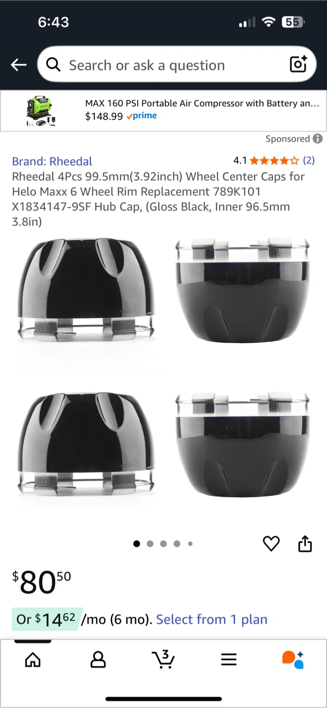 Selling a set of four Rheedal wheel center caps. They're gloss black and measure 99.5mm (3.92 inch). These are replacements for Helo Maxx 6 wheel rims, part number 789K101 X1834147-95F. They were originally priced at $80.50