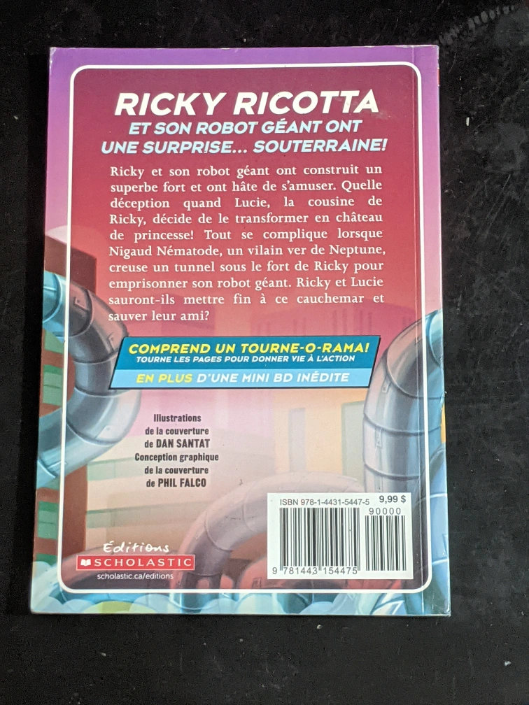Selling the Ricky Ricotta et son Robot Géant book. It's in good condition and ready for a new reader. Perfect for kids who love adventure!