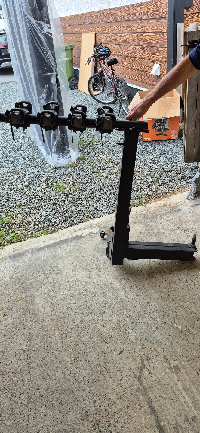 Selling a hitch-mounted bike rack for up to 4 bikes. It's in good condition and ready to help you transport your bikes safely and easily