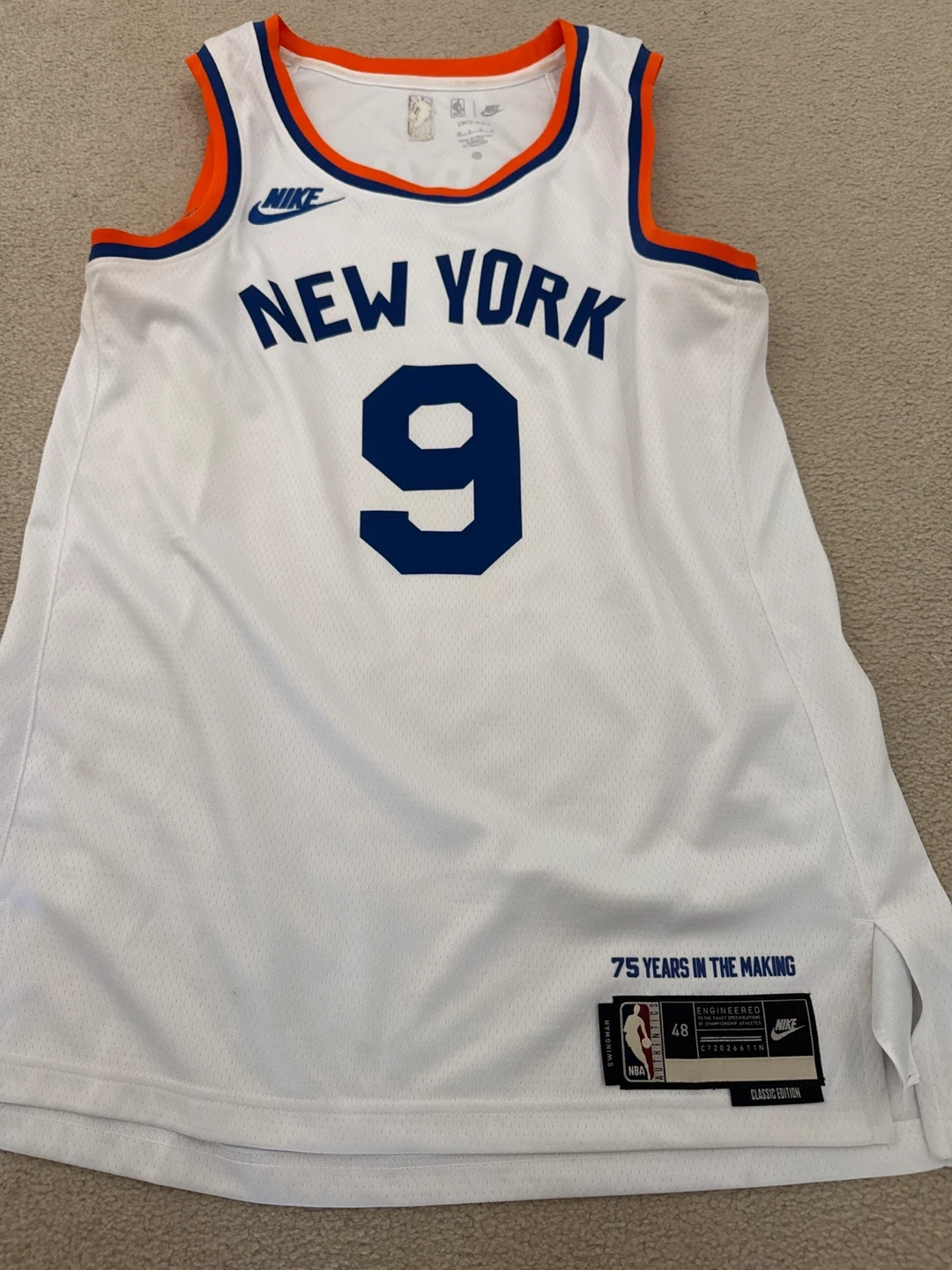 Selling a New York Knicks jersey by Nike! It's a classic edition with the number 9. The jersey commemorates 75 years in the making and is a size 48. Never been worn brand new without tags.