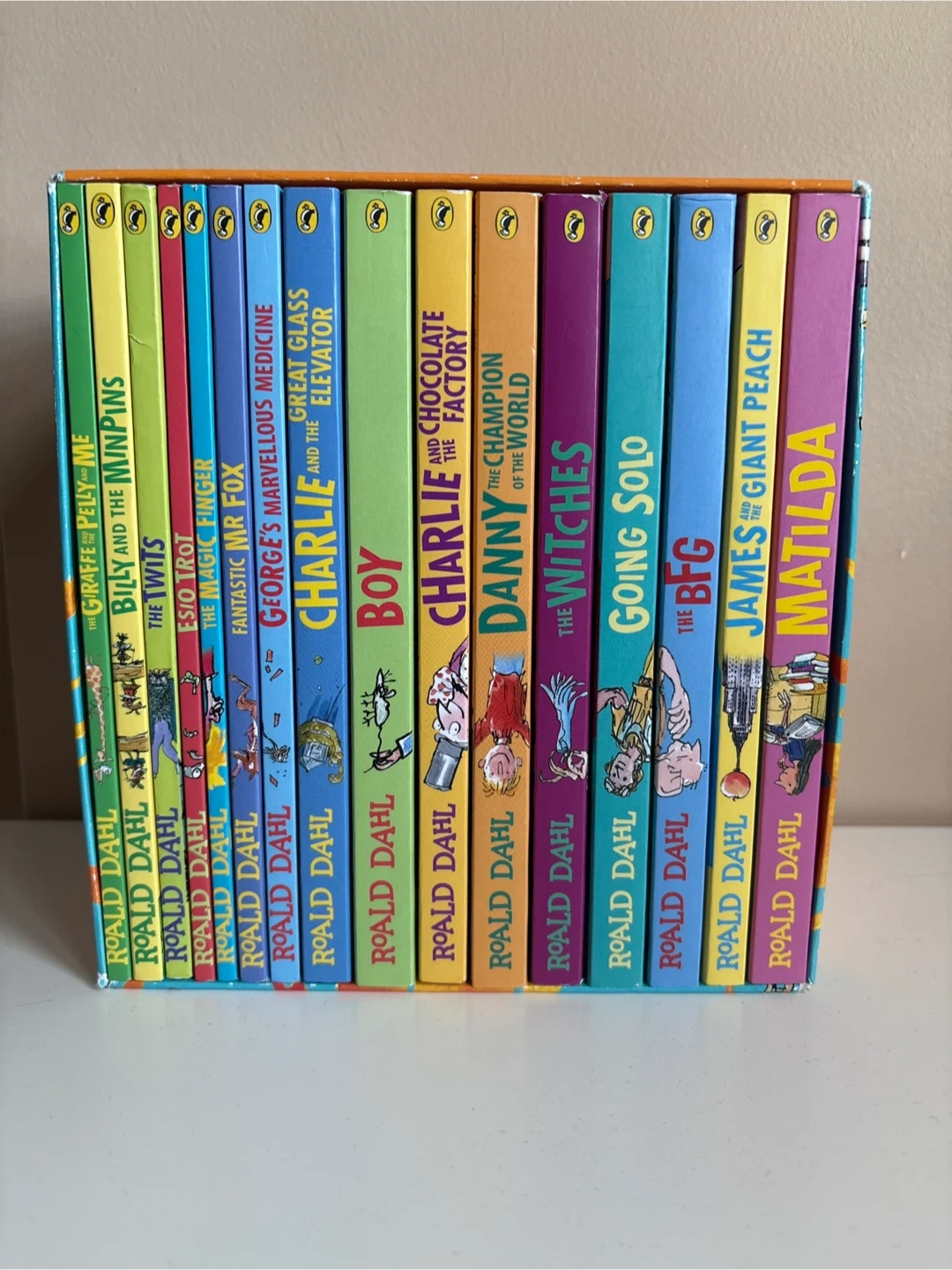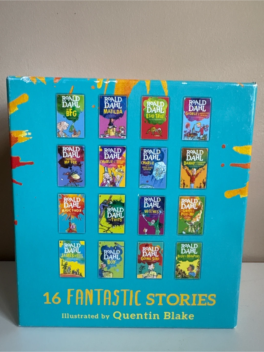 Selling a complete collection of Roald Dahl's 16 Fantastic Stories! This set includes classics like Matilda, The BFG, Charlie and the Chocolate Factory, and many more. Perfect for young readers and Dahl fans. NEVER USED