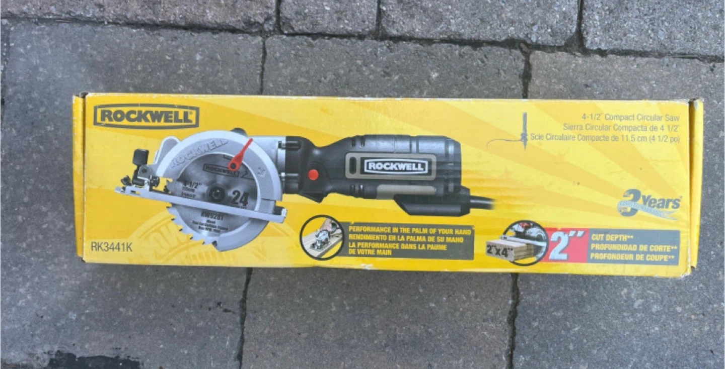 I'm selling a brand new Rockwell 4-1/2" Compact Circular Saw, model RK3441K! This compact saw is perfect for those smaller jobs around the house. It comes with a 4-1/2" blade and has a 2" cut depth. It's still in the original box with all the components included