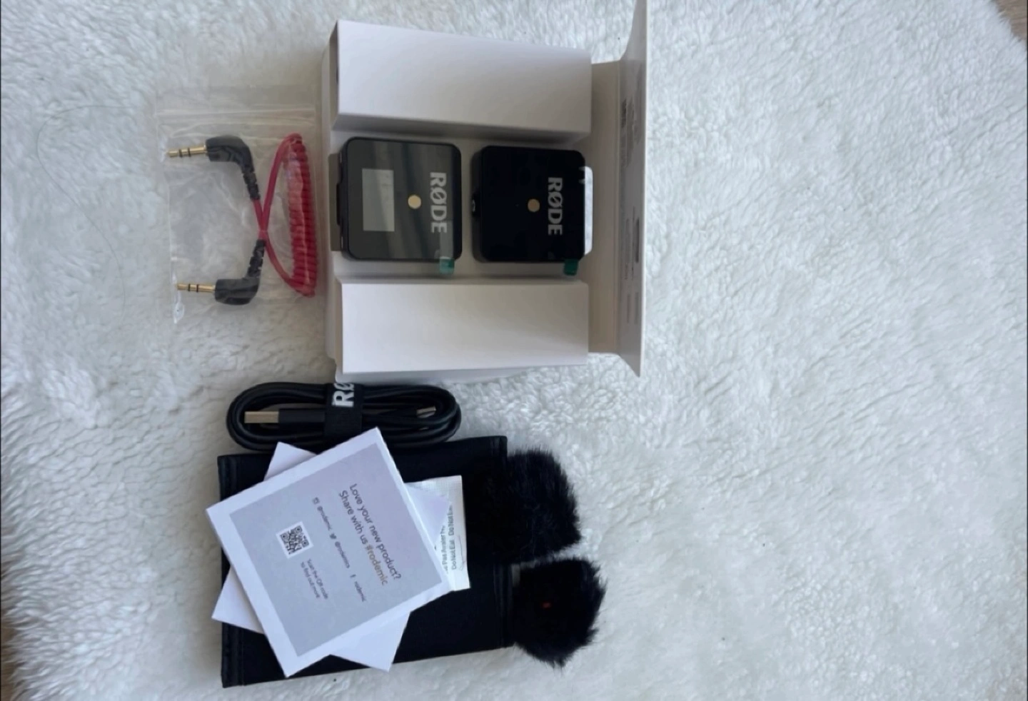 Rode Wireless Go Compact Wireless Microphone System Just the box is open but never used it. Good for video recording or YouTube filming Cash only Portable super-lightweight and ultra-compact Combo clip-on microphone or beltpack transmitter for lavalier/headset mic/ built-in omnidirectional condenser mic for broadcast-quality sound Audio delivers crystal clear audio under any conditions/ up to 70M range but optimized for shorter-range operation Power TX and RX have built-in USB-C rechargeable batteries/ up to 7 hours on a full charge including a battery Saver mode Advanced the transmitter and receiver pair in just 3 seconds/ 3-stage output pad 0 -6dB and -12dB/ use up to 8 systems in one location Wireless microphone system. Includes transmitter, receiver, and accessories. Great for mobile recording. Compact and portable design. Selling a brand new Rode Wireless Go compact wireless microphone system! It comes with the original box and all included components. This system is lightweight and portable, perfect for on-the-go recording. It includes both the transmitter and receiver, along with accessories.