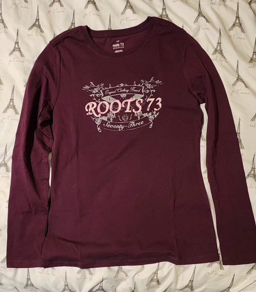 Roots 73 long-sleeve top, burgundy colour in a size small. Brand new, never worn. Please read and understand : Exact cash only, final sale, no deliveries. Main intersection Bathurst and Sheppard. If the ad is up then it is available!
