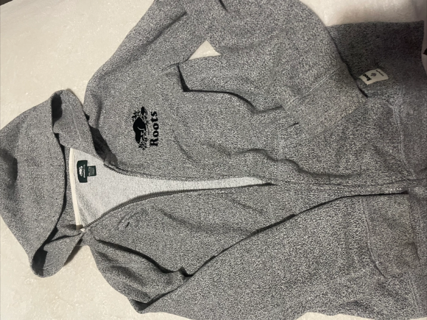 Selling a gently used Roots Kids zip-up hoodie in salt and pepper It's in great shape and perfect for keeping your little one warm and cozy. The size is XXL, which fits kids aged 13-14 years. Bought it thinking it was in the womens section ๐คท๐ปโโ๏ธ worn very few times originally 60 dollars