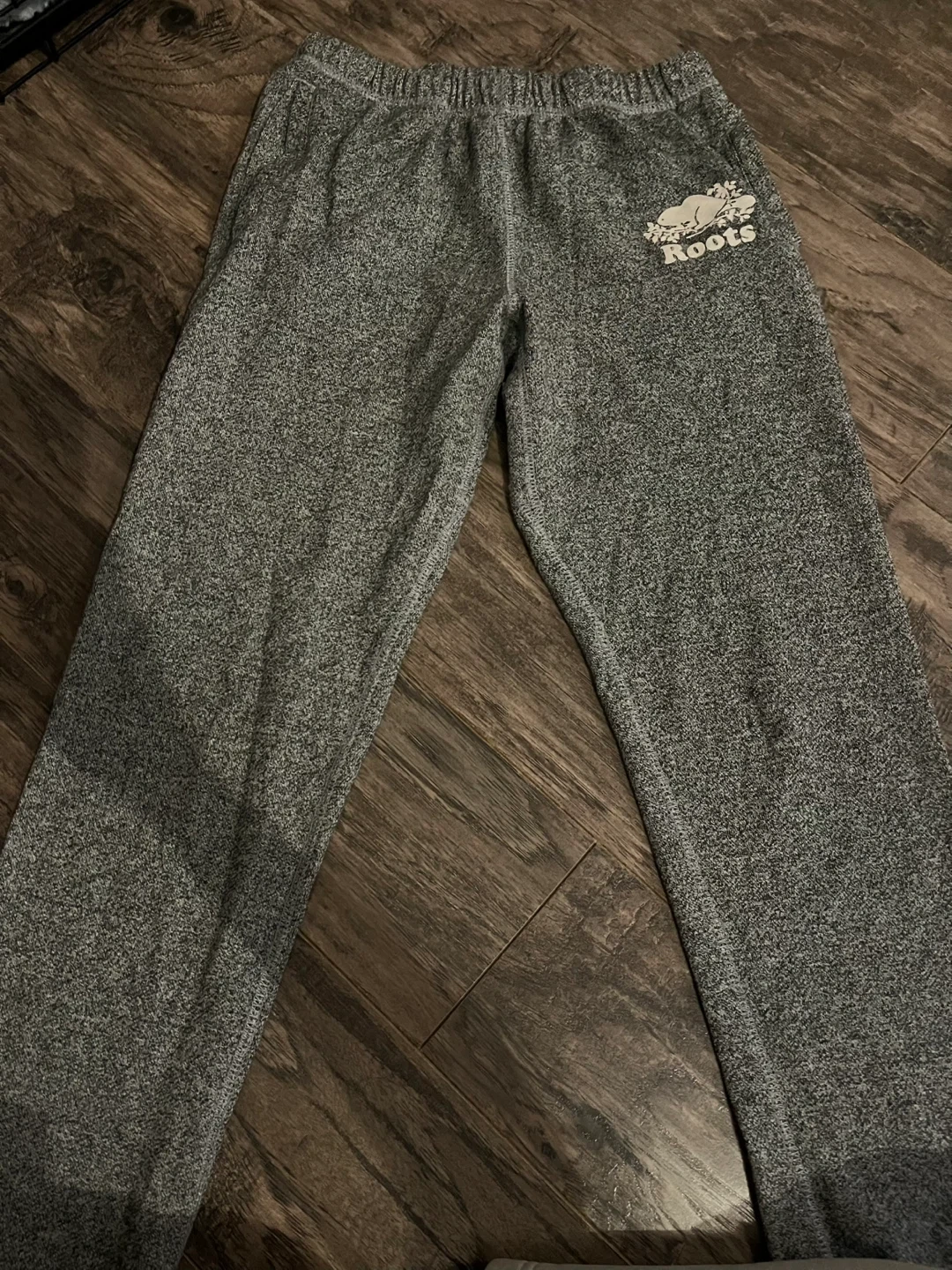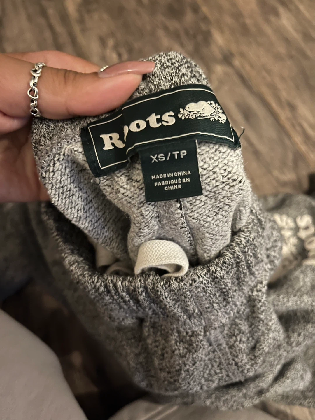 Roots sweatpants in size XS! These are a comfy salt and pepper and are in great condition. Perfect for lounging around the house or running errands. There is some pilling in the groin area, but no damage otherwise. Comes from a smoke free and pet free home