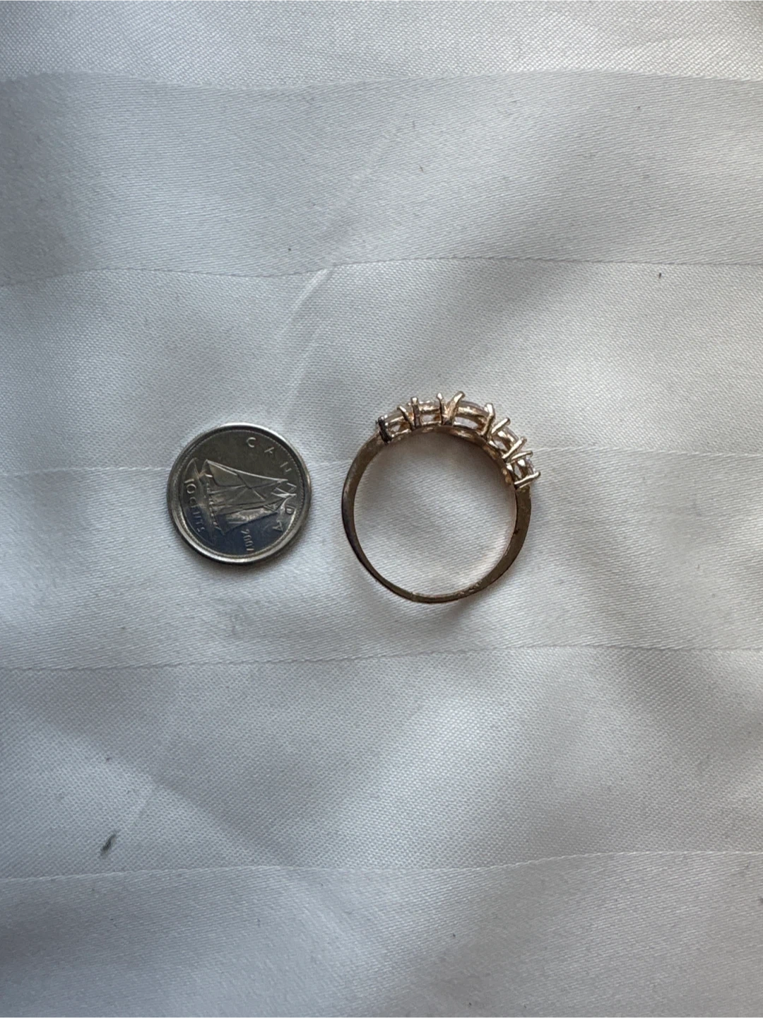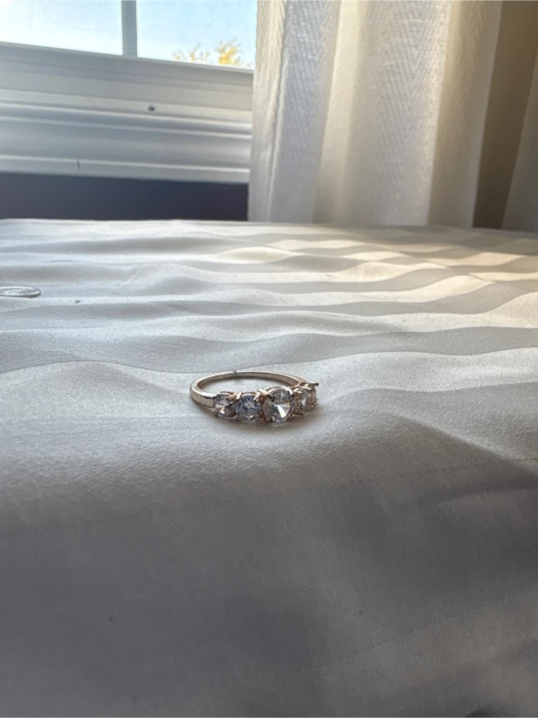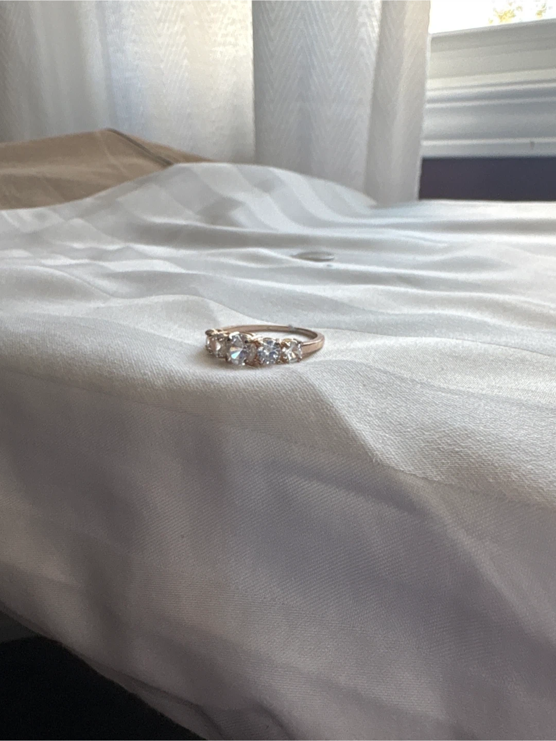 Selling a beautiful rose gold ring! It features a delicate band and is adorned with sparkling stones. The ring is in great condition and ready to be loved by someone new