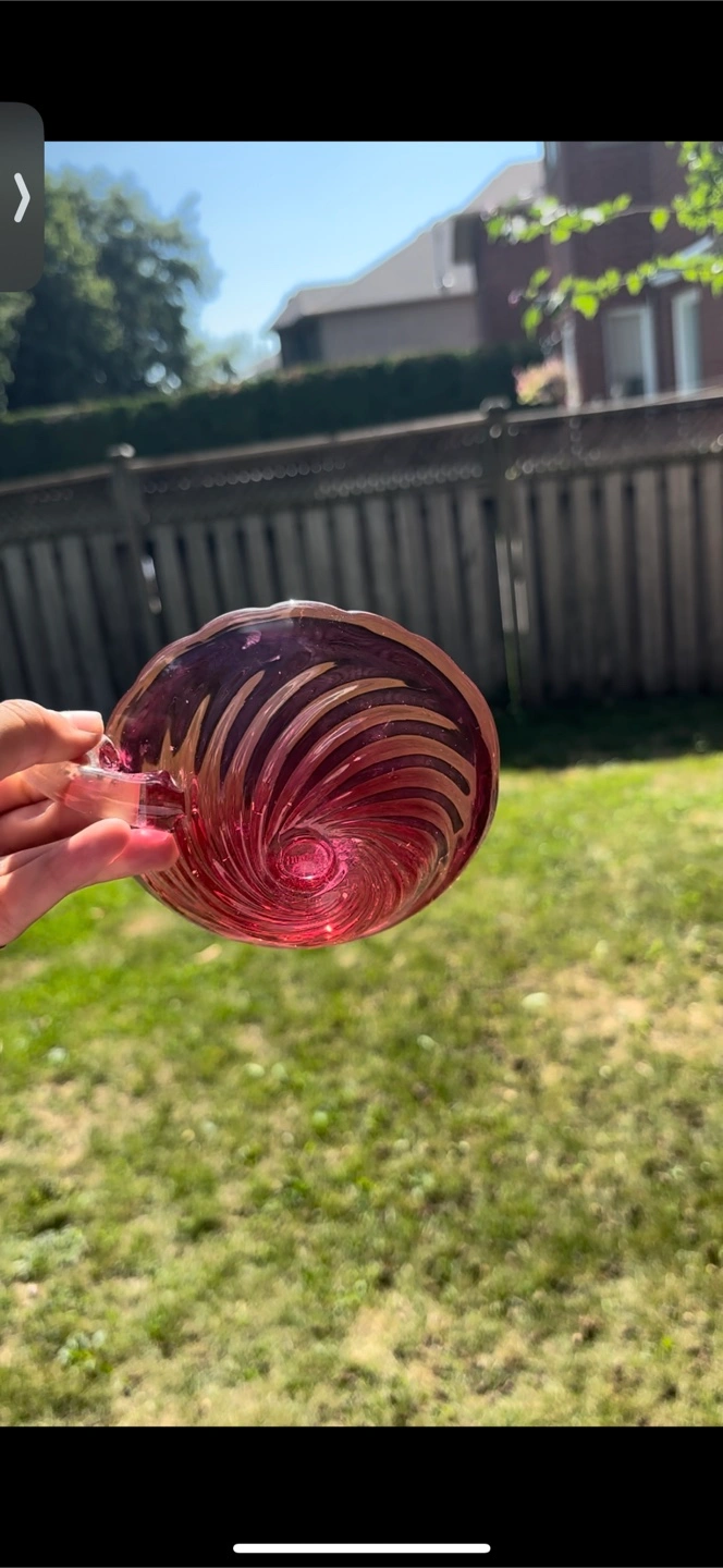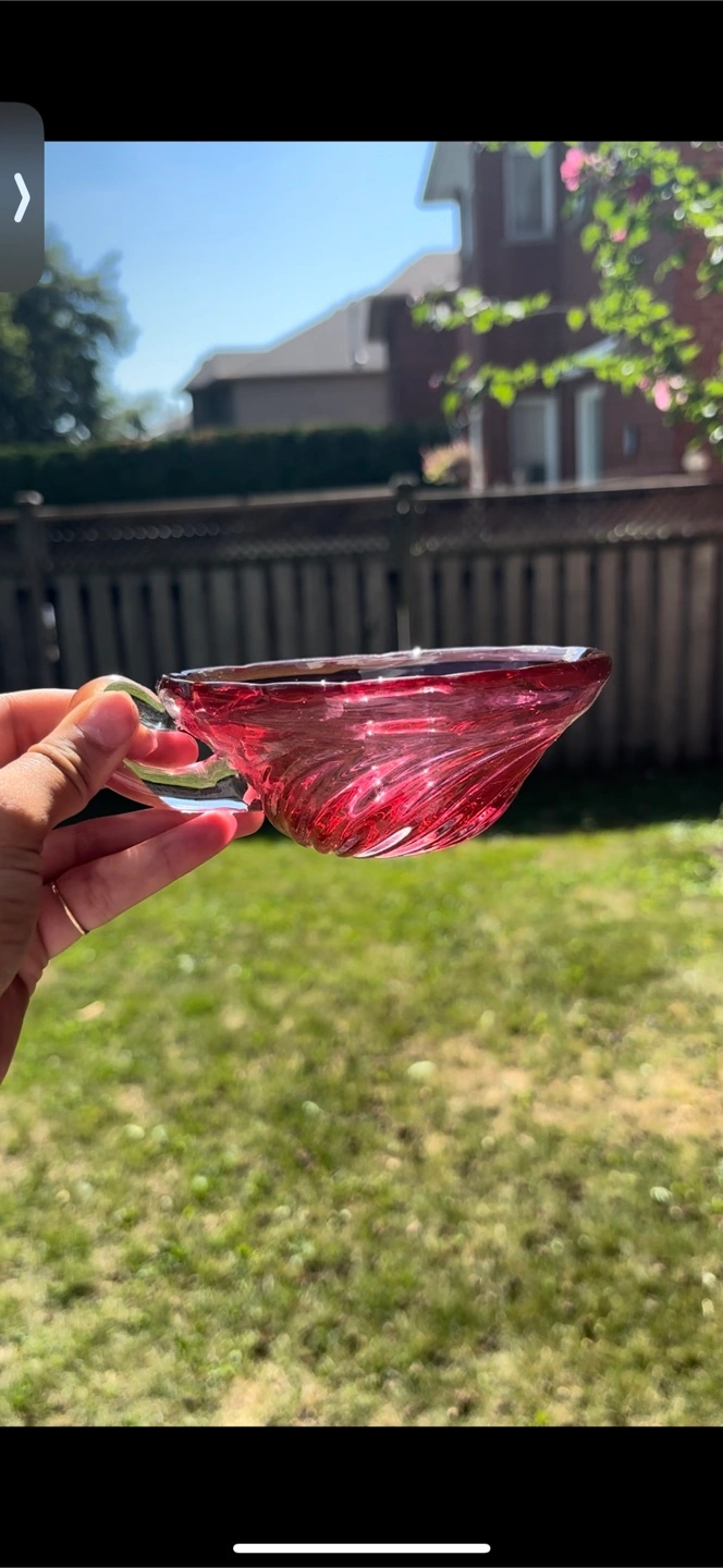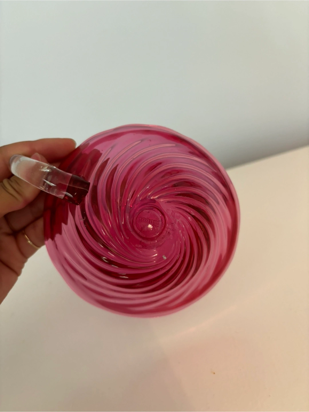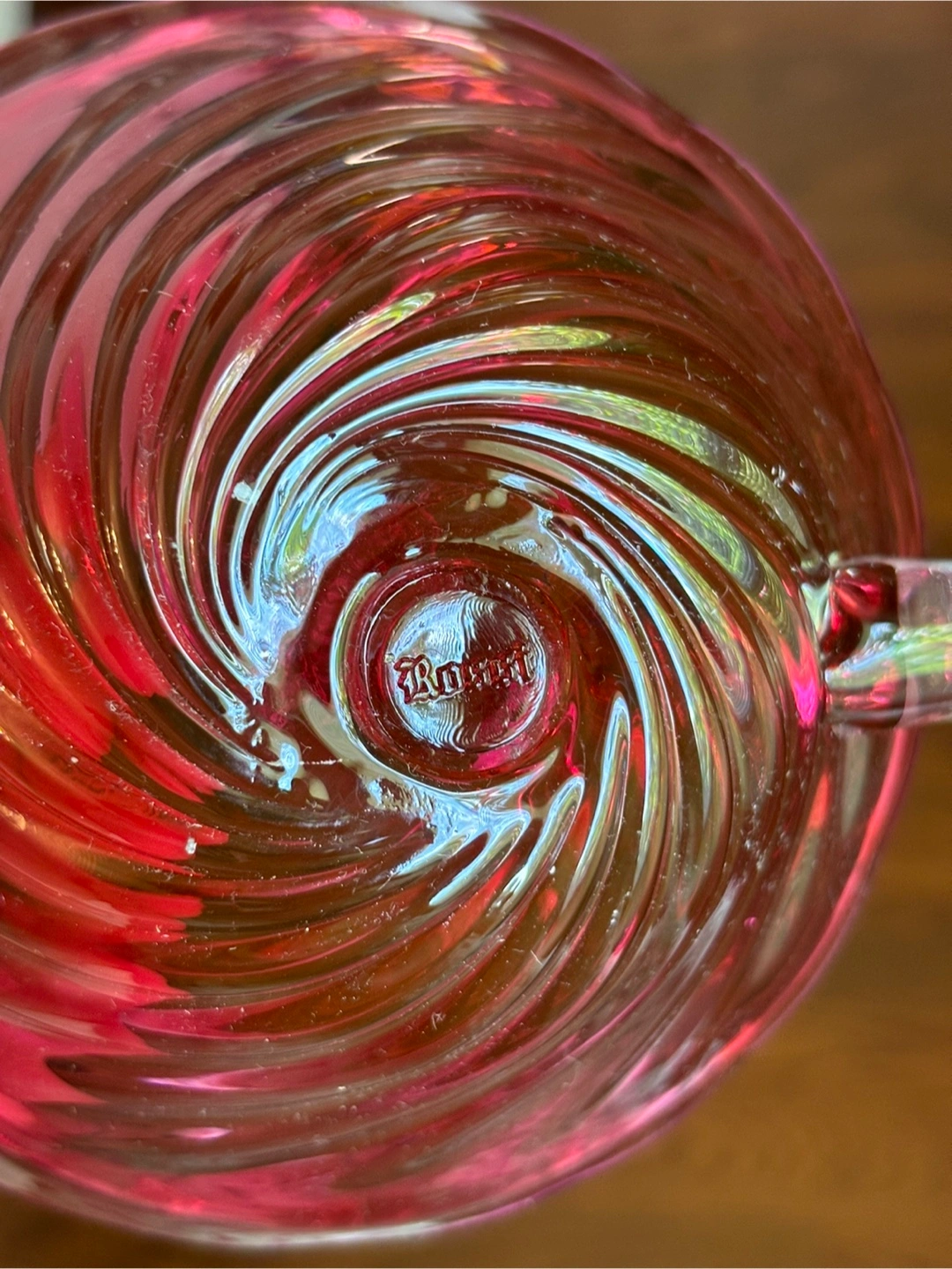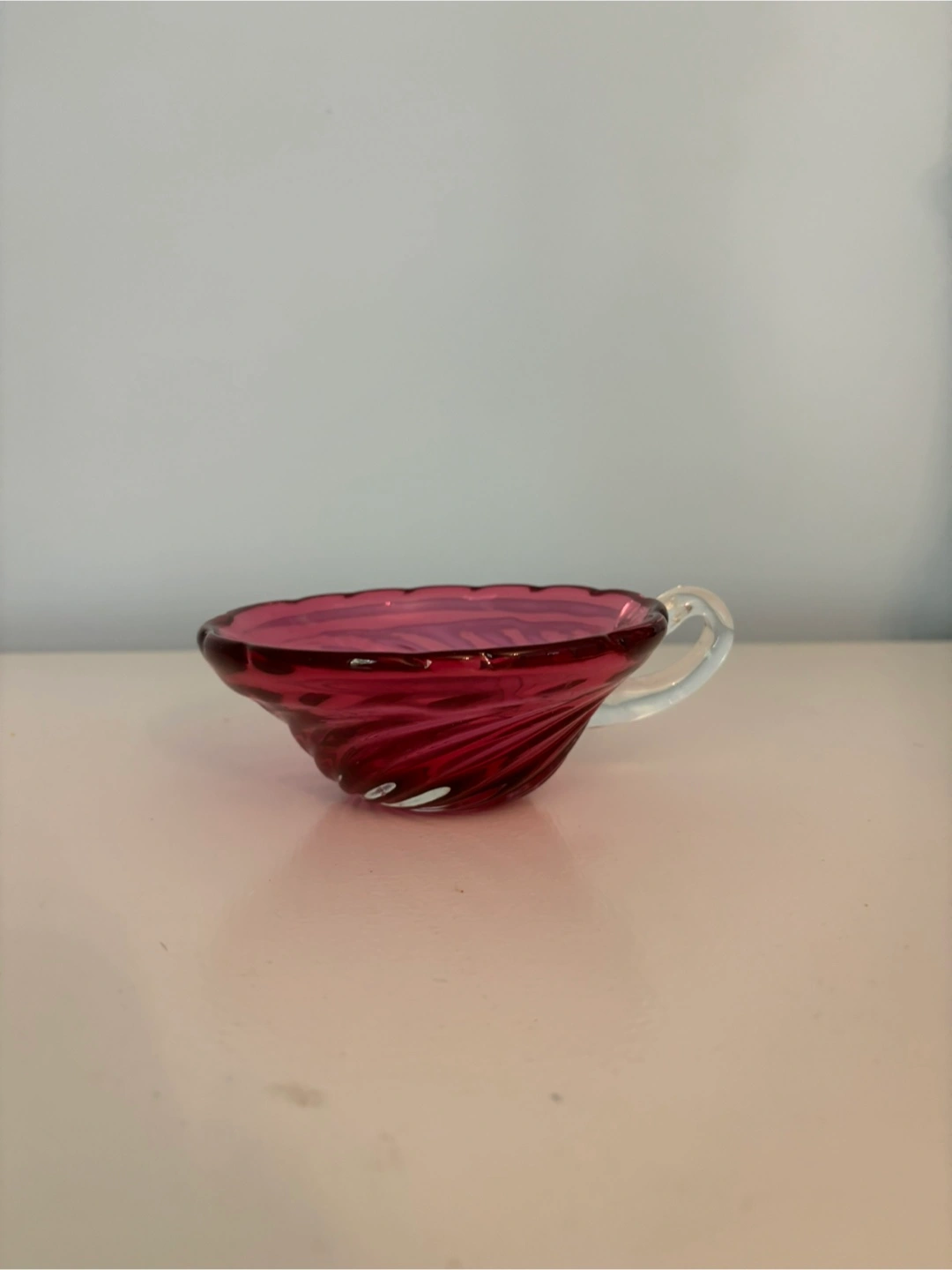 Beautiful swirl Rossi Cranberry Glass tea cup Can also be used as a tea light