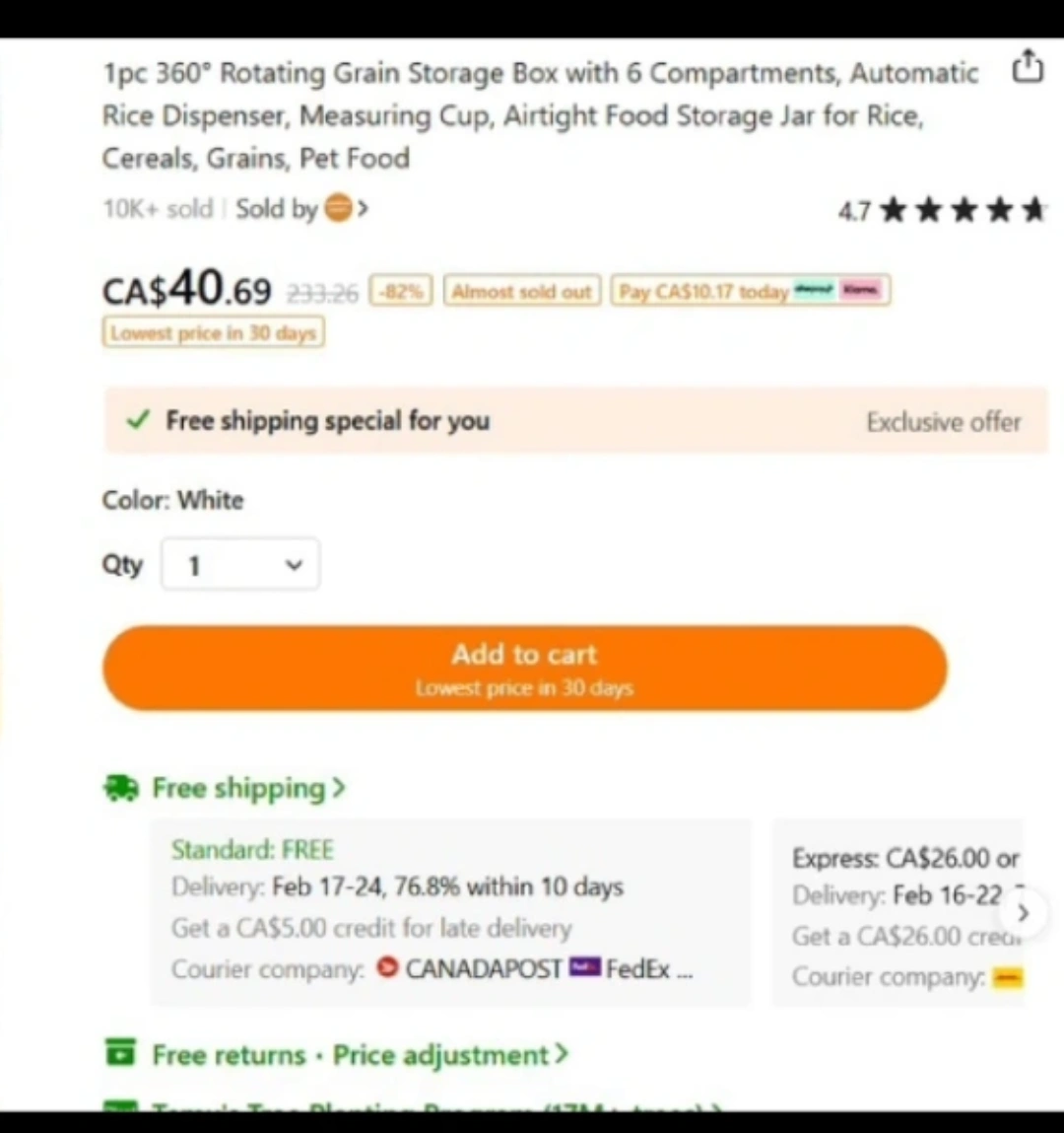 6 compartments Good for grains, rice, cereals, pet food, etc. White, no lid. I don't think it was ever used. Retails for $40 +tax PICK UP ONLY AT KEELE AND FINCH