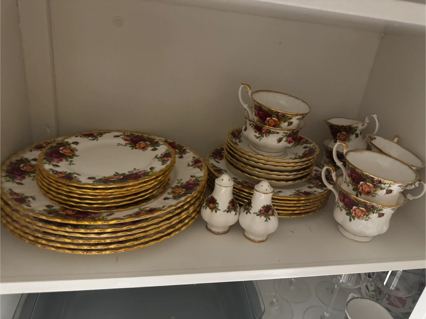 Selling a beautiful Royal Albert Old Country Roses 35-piece set! This set includes plates, cups, saucers, a creamer, and salt and pepper shakers. Perfect for adding a touch of elegance to your dining experience