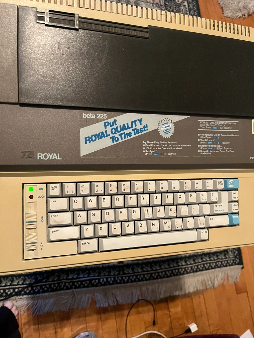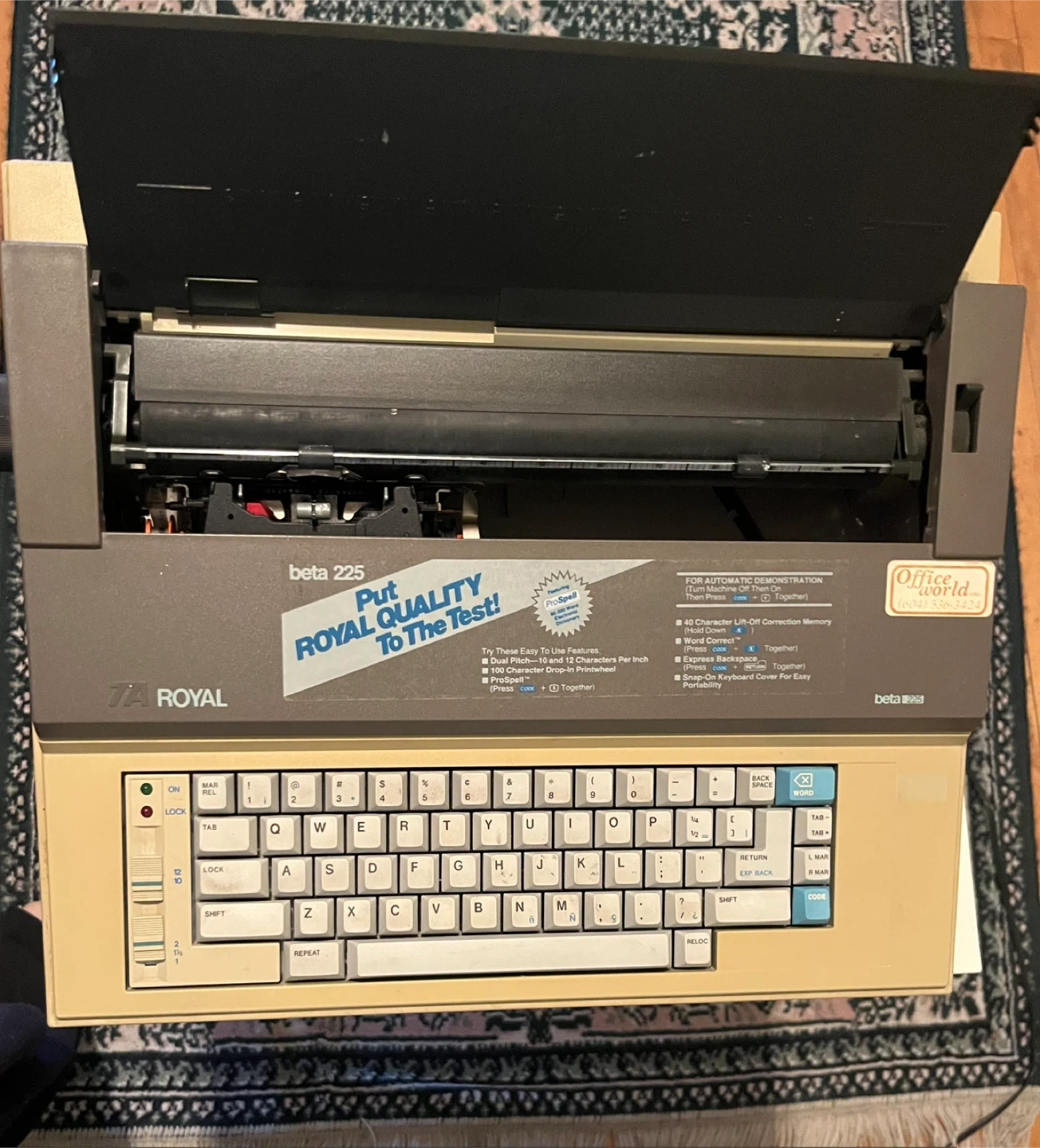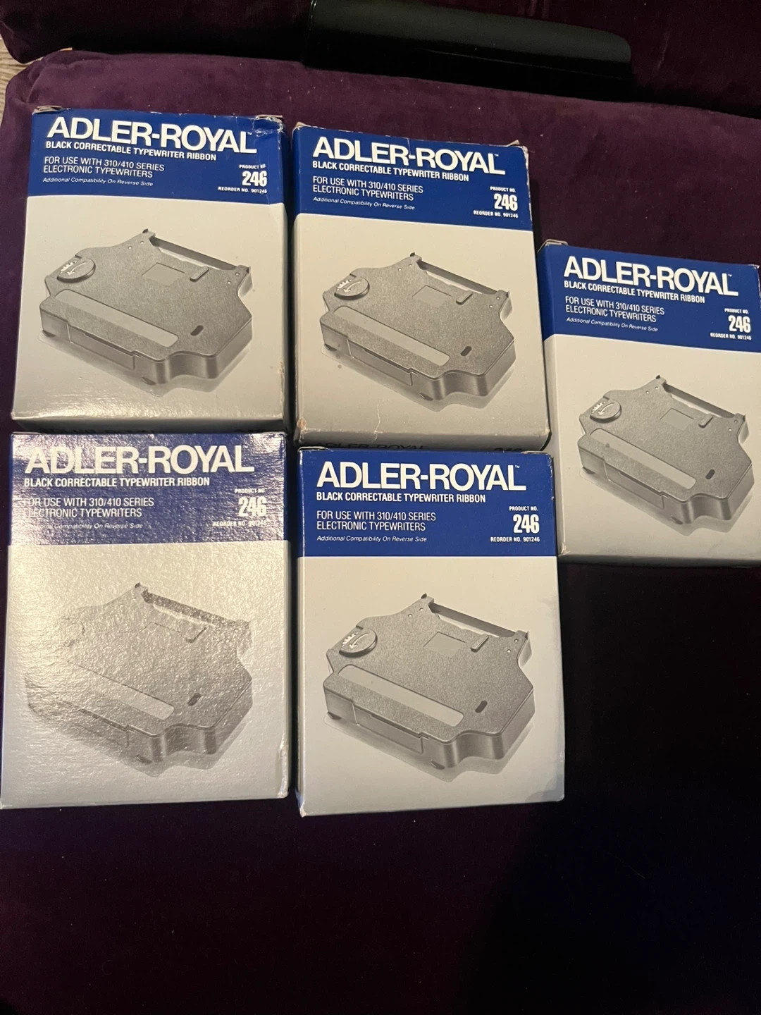 Selling a Royal Beta 225 Typewriter. It's in good working condition and ready to use! Comes with multiple Adler-Royal black correctable typewriter ribbons for the 310/410 series electronic typewriters. I opened one ribbon to see if it was in Working condition