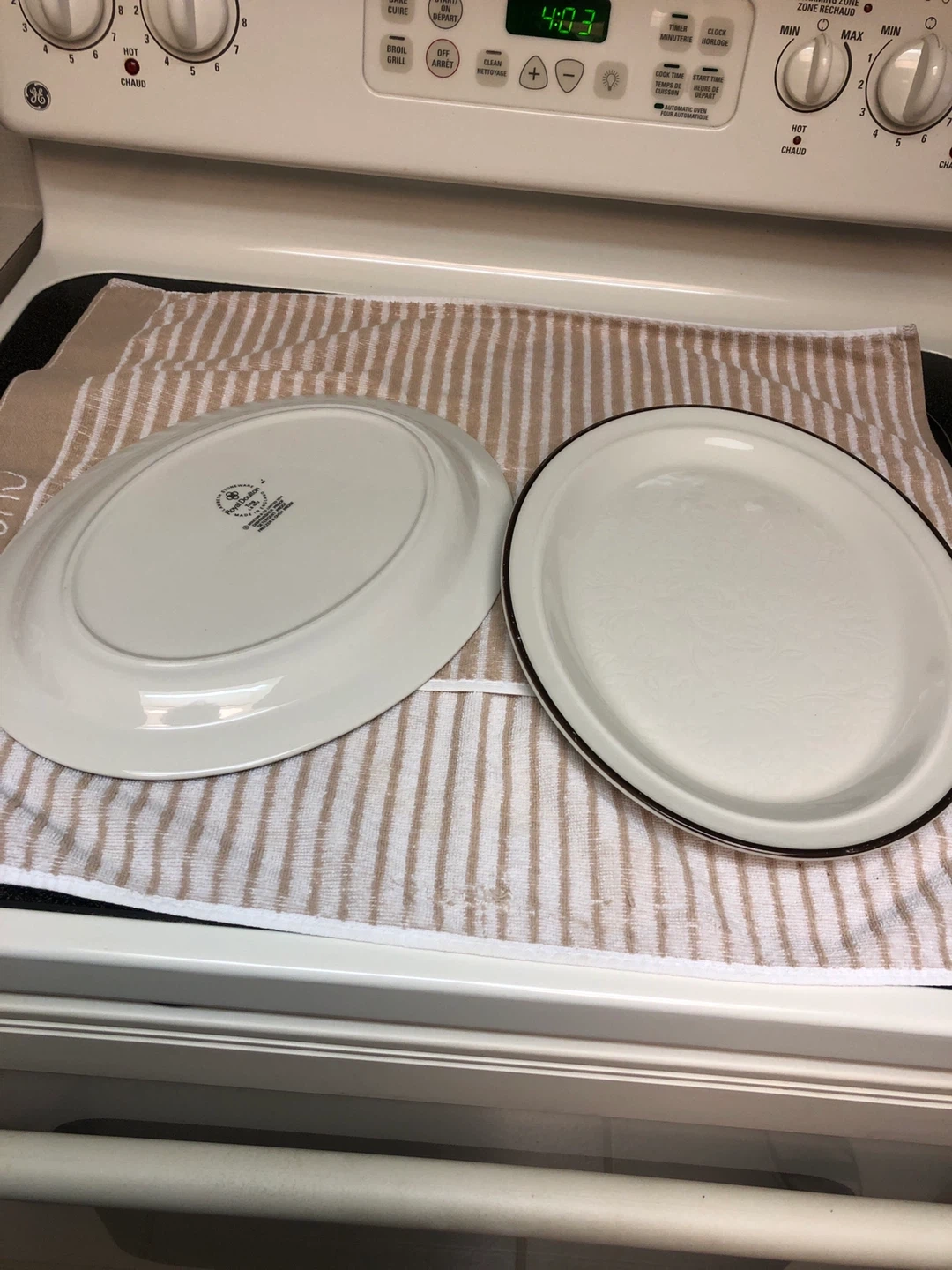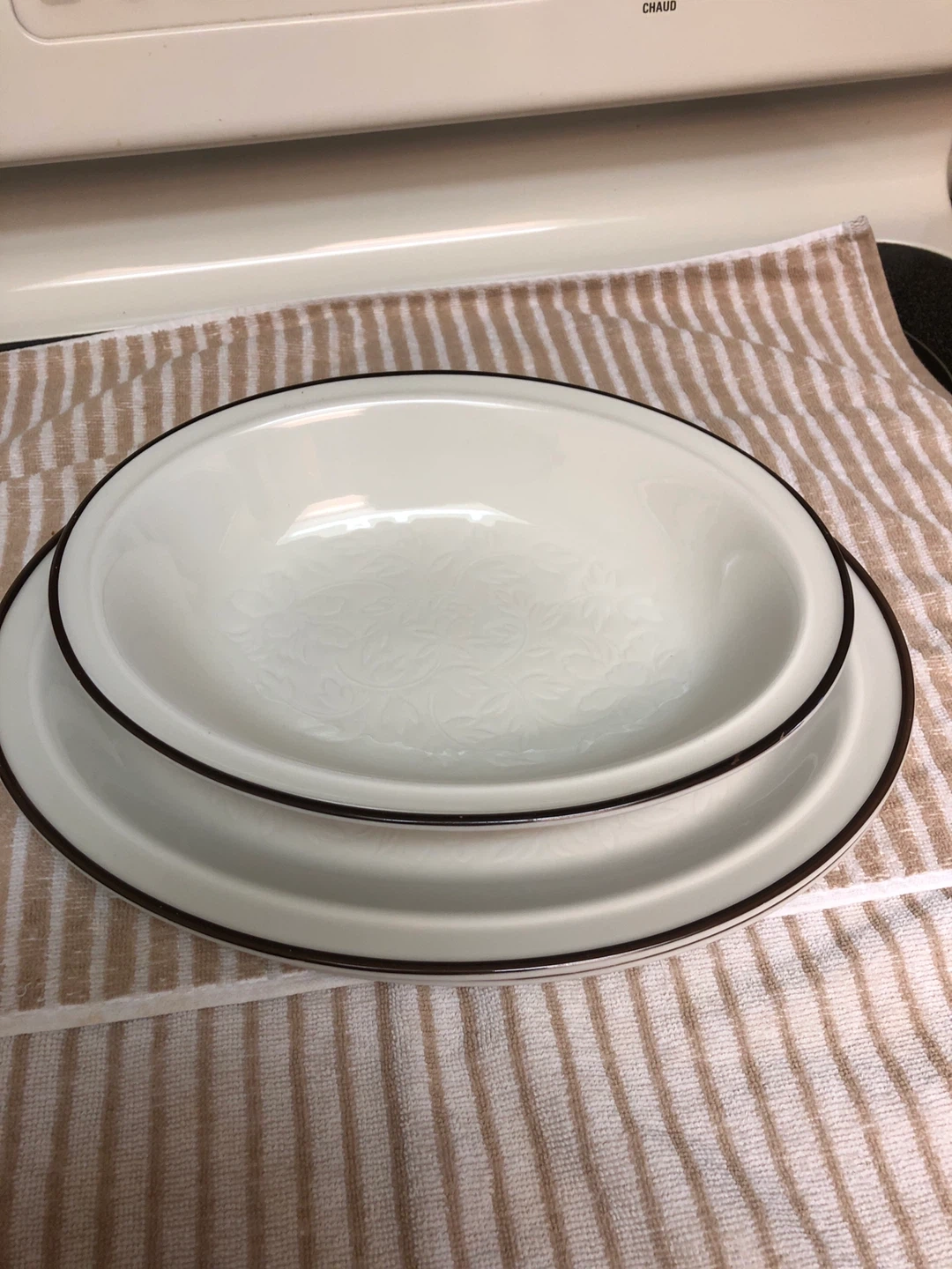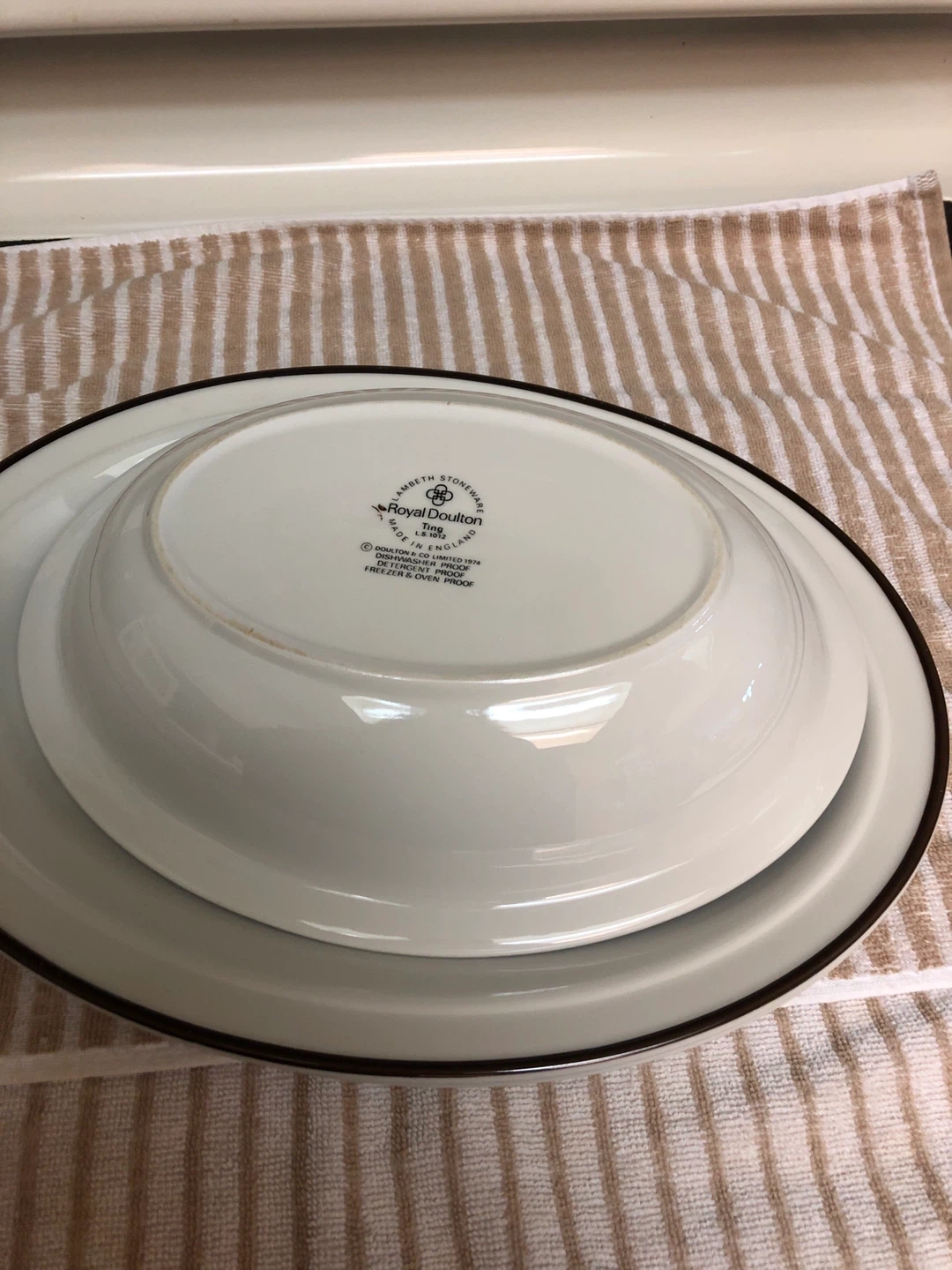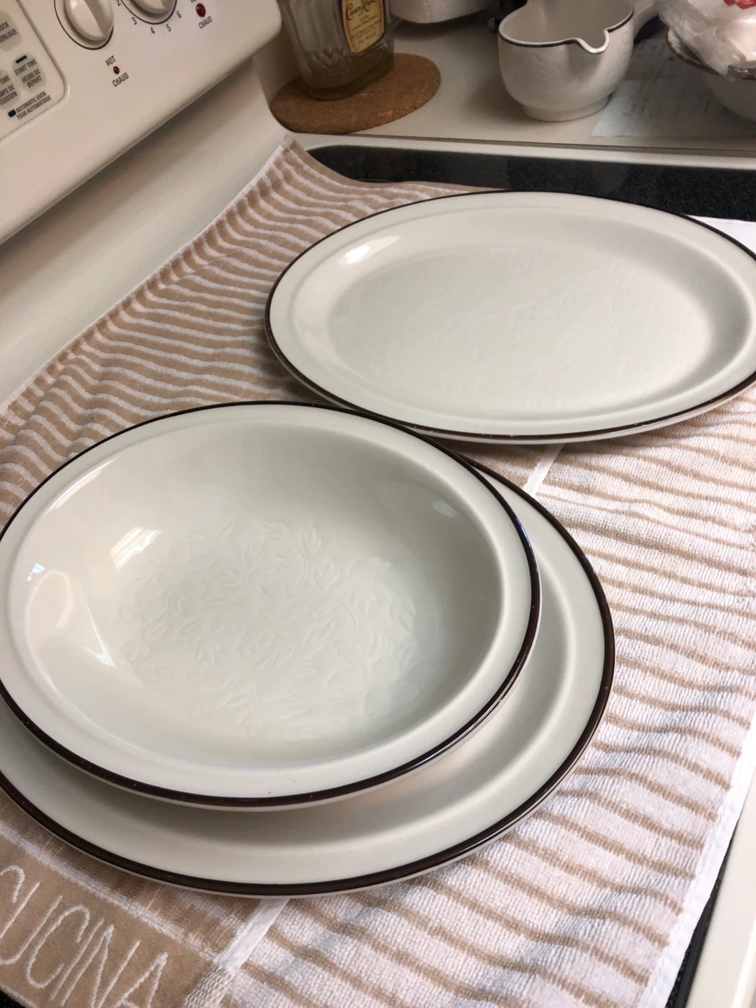 Selling a Royal Doulton dish set from the Ting L.S. 1012 collection! These dishes are made in England and are dishwasher, detergent, freezer, and oven proof 2 Large Platters 1 Large Oval Bowl